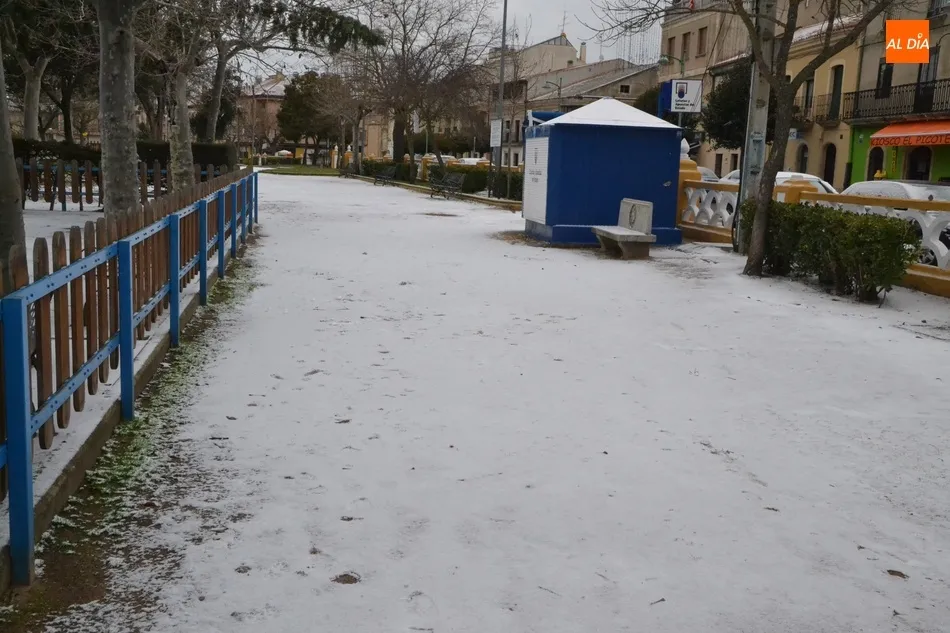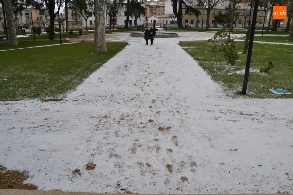 En todo caso, la nieve sí recubrió de blanco los espacios más abiertos, especialmente los parques en las zonas sin árboles, como el Parque de La Glorieta, o la zona central del Parque de La Florida, o lugares como el patio del Colegio Miróbriga. Otro de los lugares donde la nieve dejó una bella estampa fue la céntrica Plazuela del Buen Alcalde, al quedar totalmente cubiertas sus distintas superficies.