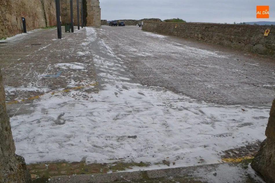 De hecho, en la mañana del sábado ya hubo alguna incidencia en forma de caída en el centro histórico, pese a que se veía a pocos mirobrigenses por las calles. Para intentar evitar lo máximo posible esos problemas con la nieve y el hielo en el tránsito, empleados de Urbaser estuvieron esparciendo sal durante toda la mañana, como ya vienen haciendo en los últimos días todas las mañanas ante las temperaturas bajo cero que se vienen registrando durante las madrugadas.