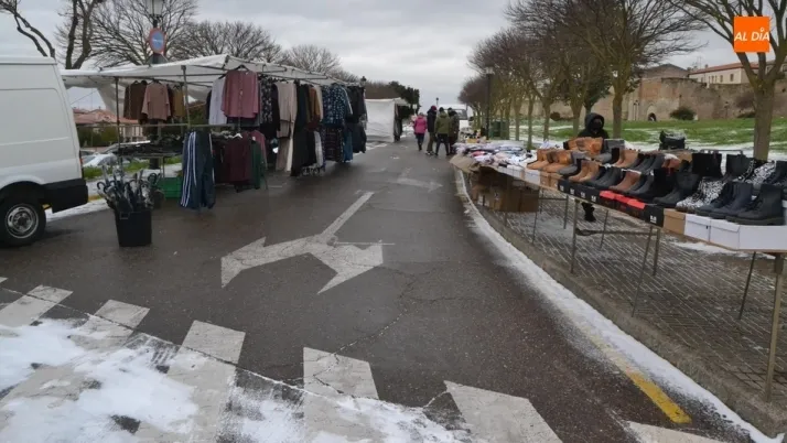 El temporal Filomena ha tenido entre sus consecuencias directas en Ciudad Rodrigo la reducción a la mínima expresión del tradicional mercadillo sabatino, al no desplazarse a la ciudad la práctica totalidad de los vendedores (hay que recordar que la Guardia Civil había recomendado no realizar ningún desplazamiento por carretera en la provincia de Salamanca entre el jueves y el domingo, además de que justo lo más crudo del temporal ha llegado a Miróbriga este sábado).