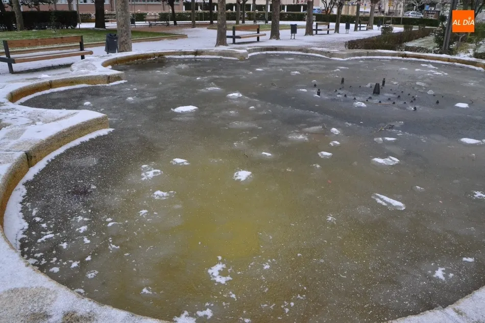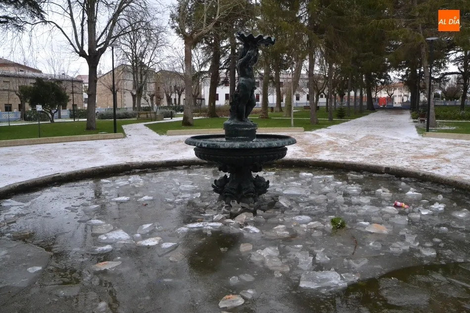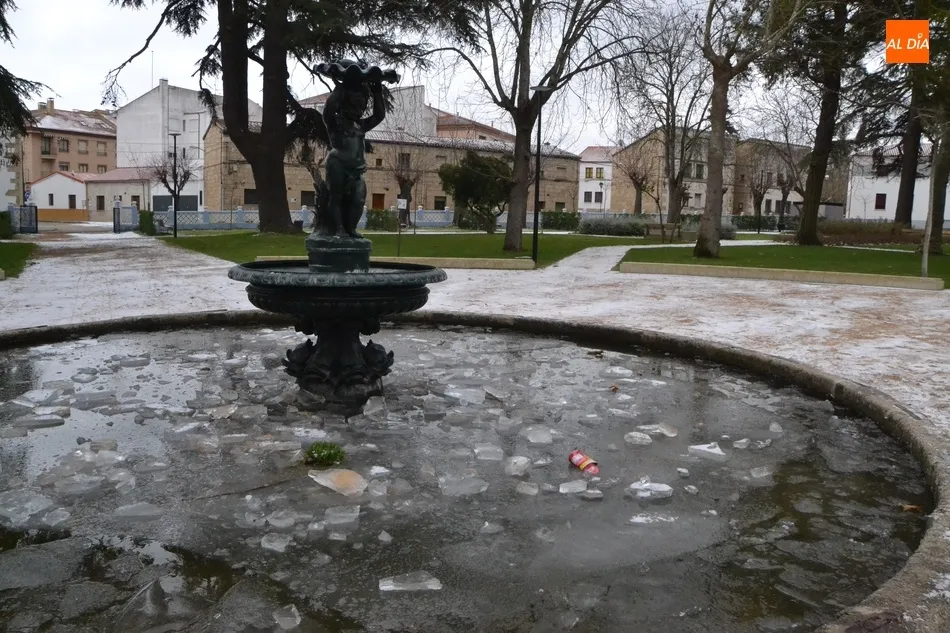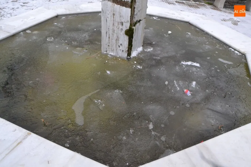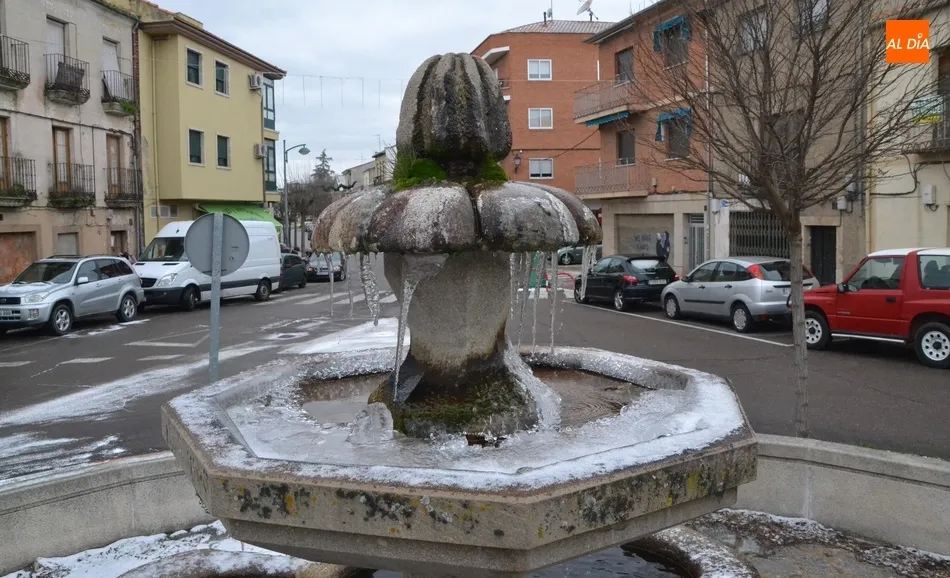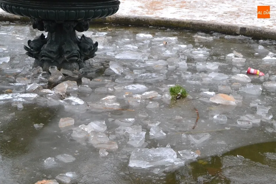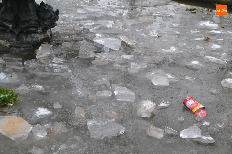 El temporal que está azotando la Península Ibérico en las últimas horas no ha hecho más que agravar la congelación del agua que se viene produciendo en estos primeros días del mes de enero en varias de las fuentes situadas en espacios públicos de Ciudad Rodrigo producto de las bajísimas temperaturas nocturnas, por debajo del 0º.