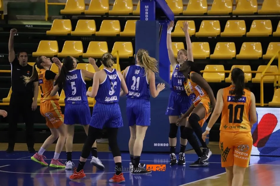 Por su parte, el técnico Roberto Íñiguez empleó el siguiente quinteto inicial: Maite Cazorla, Andrea Vilaró, Karlie Samuelson, Katie Lou Samuelson y Emese Hof, apostando por la juventud en la tarde de este sábado en Salamanca en el derbi regional frente a las de Zamora.