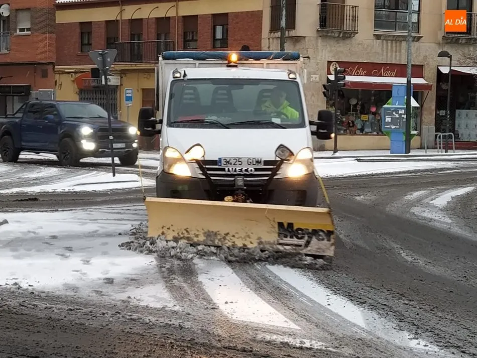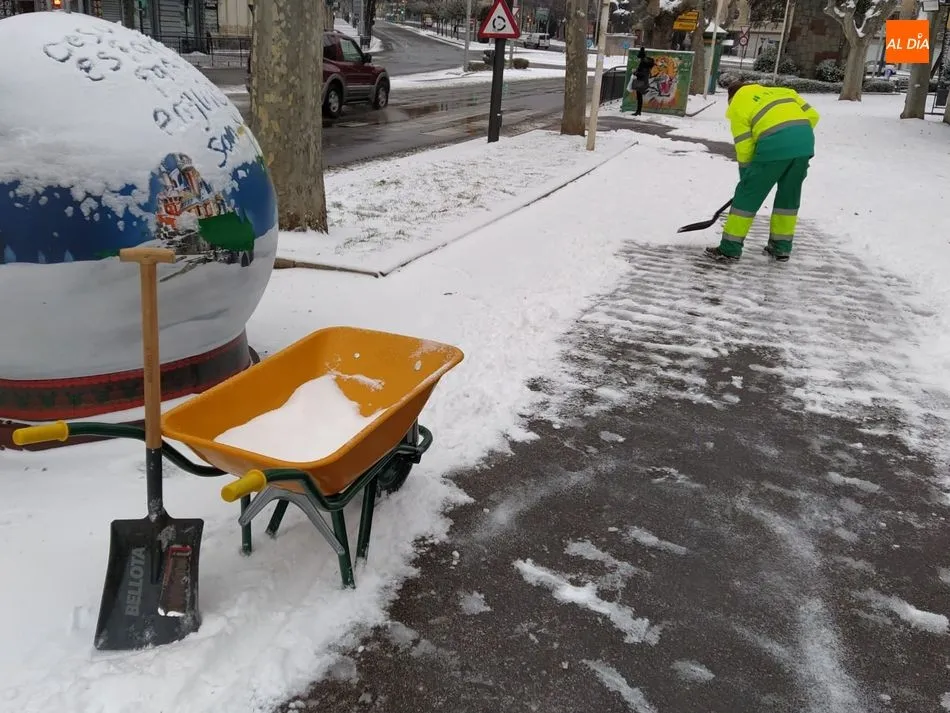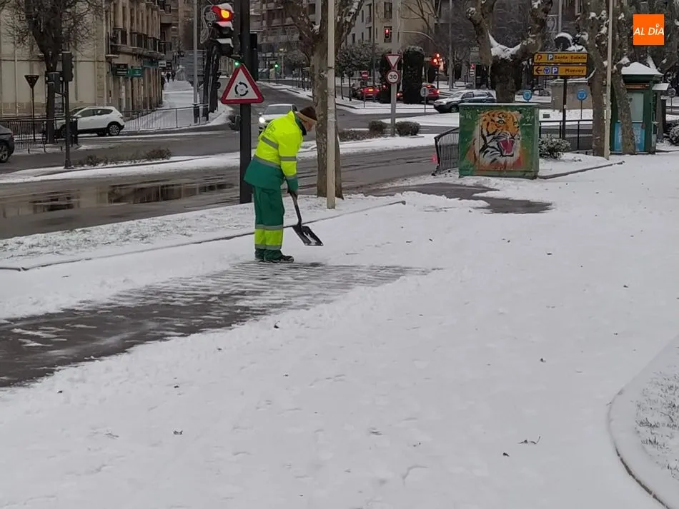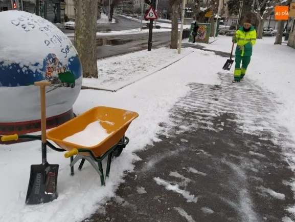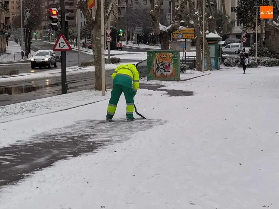 El Ayuntamiento de Salamanca ha desplegado el dispositivo habitual ante temporales de nieve, con gran presencia de operarios del Servicio de Limipeza, en coordinación con la Policía Local, que desde anoche realizaron una continua vigilancia en vías de acceso a hospitales, centros de salud, glorietas de acceso a la ciudad, vías de tránsito de las líneas de bus.