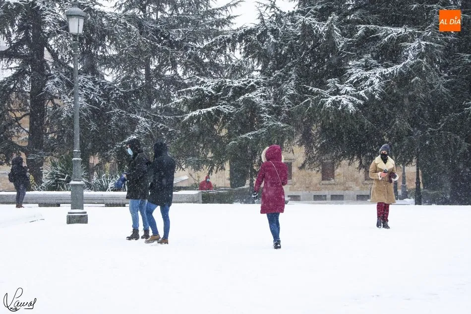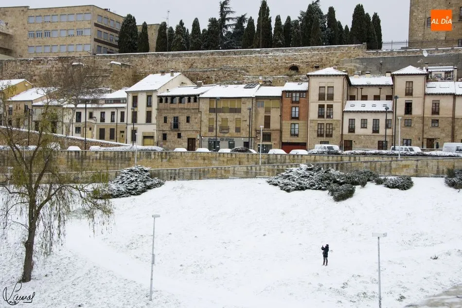 Los vecinos de Salamanca disfrutaron ayer de una jornada de nieve en las calles de la ciudad. La previsión de nieve para el día de hoy es muy reducida, comenzando con una ola de frío que durará hasta mediados de la próxima semana.