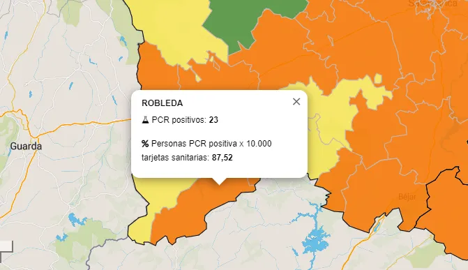 La Zona de Ciudad Rodrigo suma 26 y la Zona de Robleda 21, dejando de haber zonas en verde en la comarca