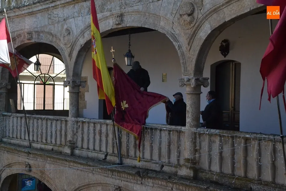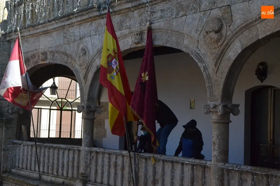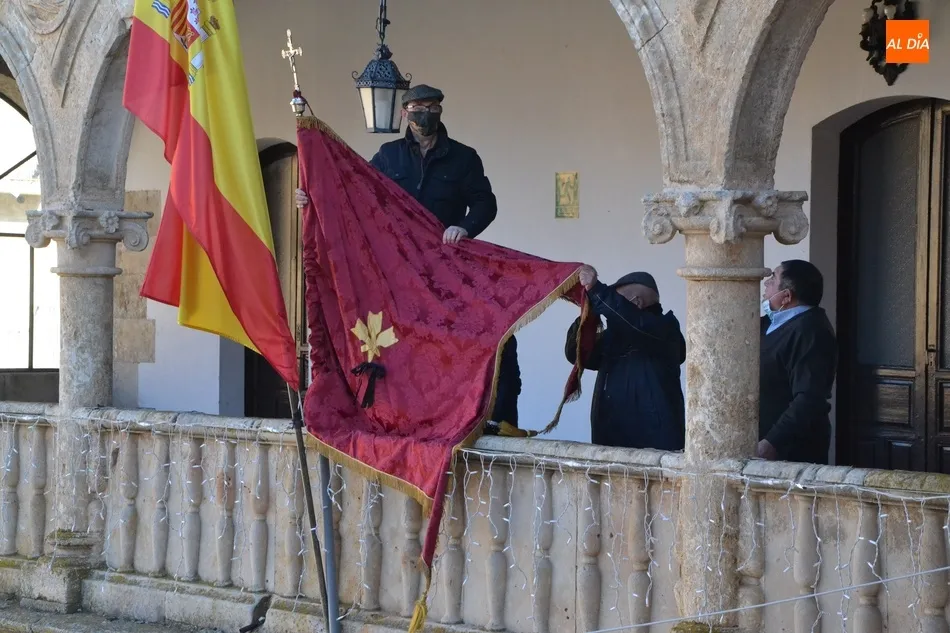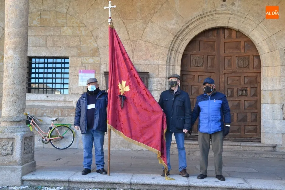 Como este año la reducida celebración del patrón no tiene mayordomos (los designados para 2021 han sido retrasados a 2022), la Cofradía ha decidido colocar el pendón en la balconada de la Casa Consistorial, a donde fue llevado a última hora de la mañana del lunes por varios de sus responsables. Como se puede ver en las imágenes, el pendón luce un crespón negro en recuerdo de las víctimas que está dejando la pandemia del coronavirus.