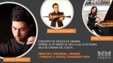 Los profesores del COSCYL Lorenzo Meseguer (violonchelo) y Angelo Montanaro (clarinete) junto con la pianista Irene Alfageme van a llevar a acabo un concierto donde podremos escuchar obras de E. Chausson, J. Brahms, J. Françaix, B. Kovacs, Connesson y Rota. Será el viernes 15 de enero a las 19:30 horas en la Sala de Cámara del COSCYL y se emitirá en streaming a través del canal de Youtube COSCYL TV.