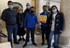 Una representación de los alumnos y formadores del Seminario Diocesano San Cayetano de Ciudad Rodrigo, junto a su rector, Anselmo Matilla, hicieron entrega en la mañana del jueves a la delegada diocesana de Cáritas, María Paz Diago, y a su directora, Mar Manzano, del dinero recaudado en la institución con la venta de las bolas navideñas solidarias de la campaña Gracias a ti pueden elegir de la entidad. Como ya publicamos en diciembre, en el caso del Seminario optaron por colgar las bolas solidarias en el pino navideño que han tenido situado en el hall del Sagrado Corazón de Jesús. En total, en este centro se han recaudado 110?.