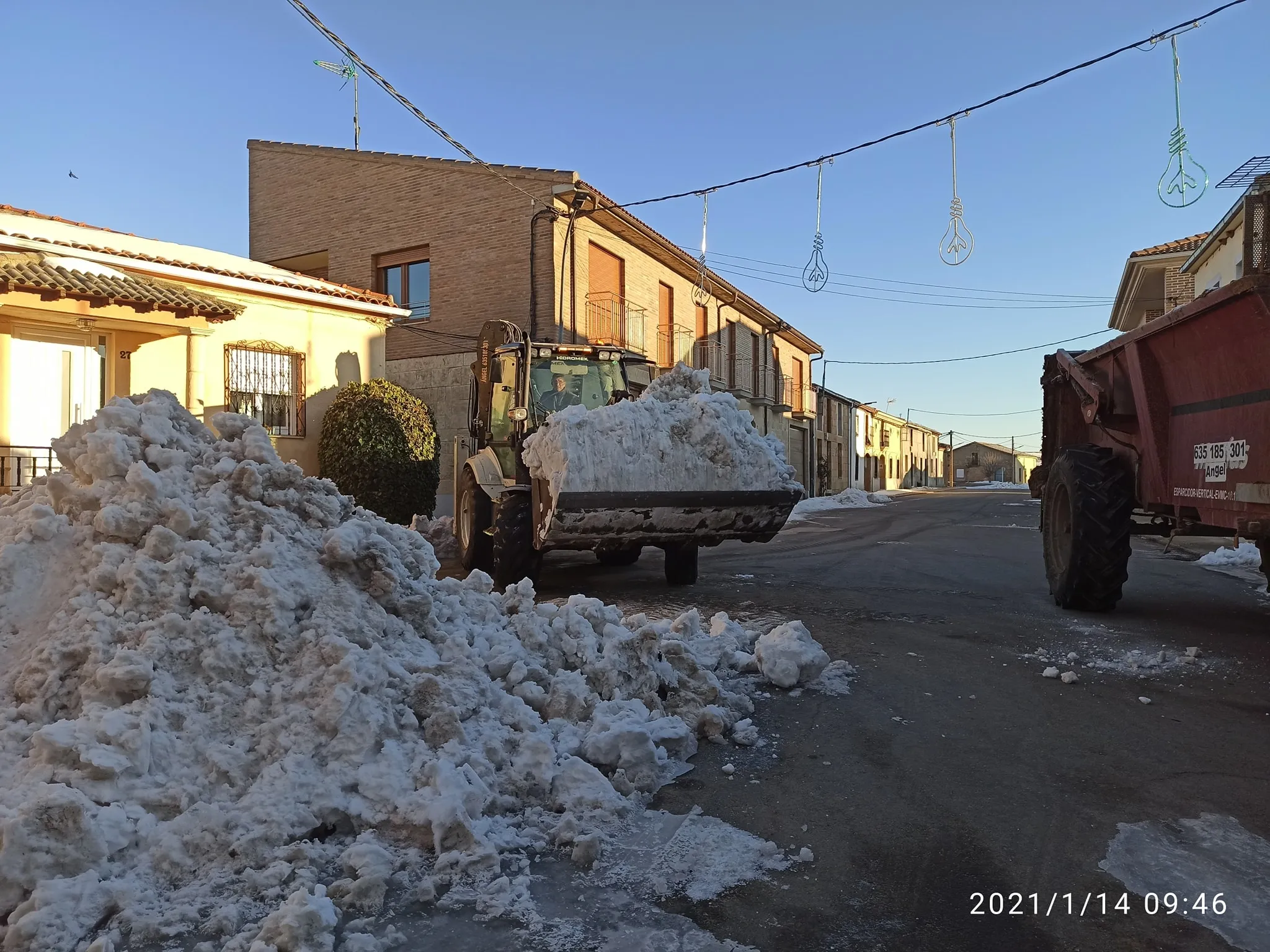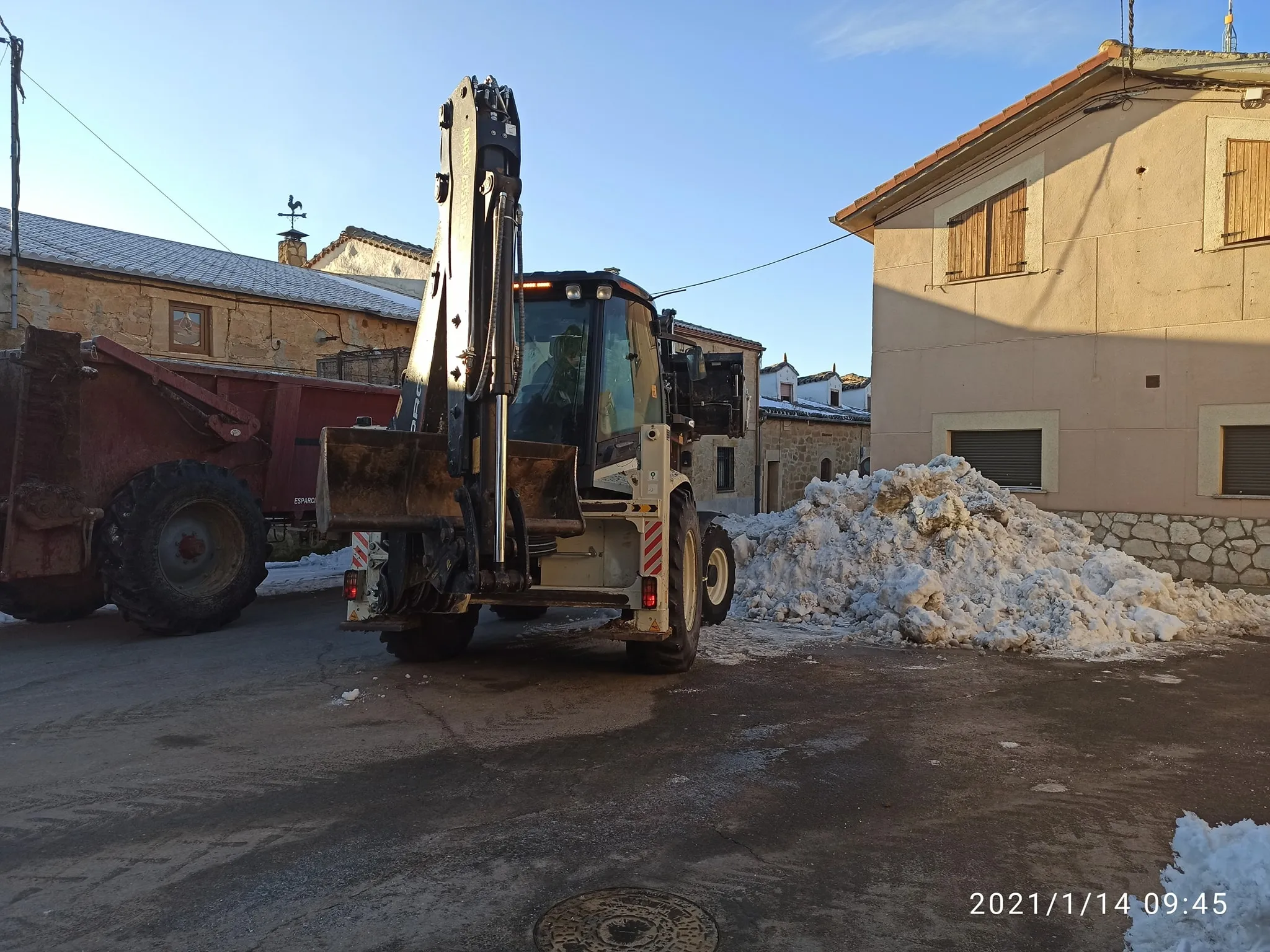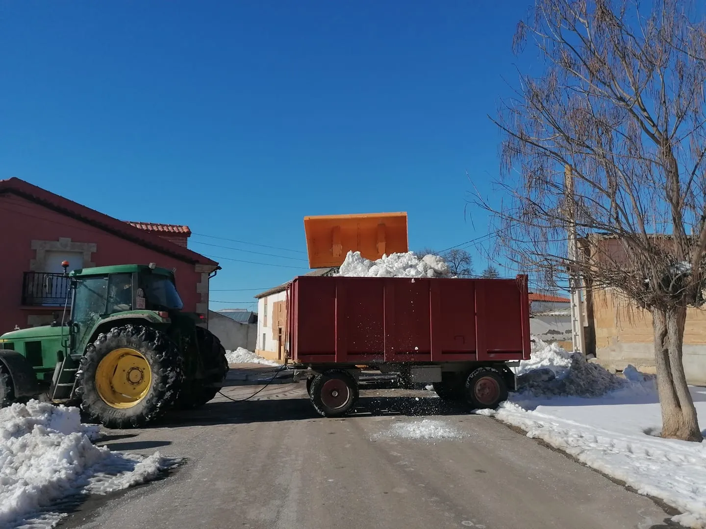 Estos días, tras la nevada continúan los trabajos de limpieza de nieve en los pueblos. En Villoruera y Aldearrubia se han visto estos días máquinas retroexcavadoras, tractores, remolques y camiones trabajando en la retirada de la nieve. Los empleados municipales también están muy pendientes de aplicar sal y retirar nieve de lugares transitados.
