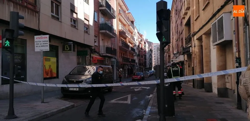 en estos hechos. Al lugar han acudido agentes de la Policía Nacional y un camión escala de los bomberos de Salamanca. Los agentes han acordonado la zona para evitar accidentes y están despejando de público el lugar para evitar reacciones inesperadas de la mujer que se encuentra en la ventana.