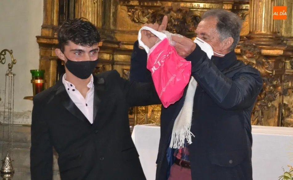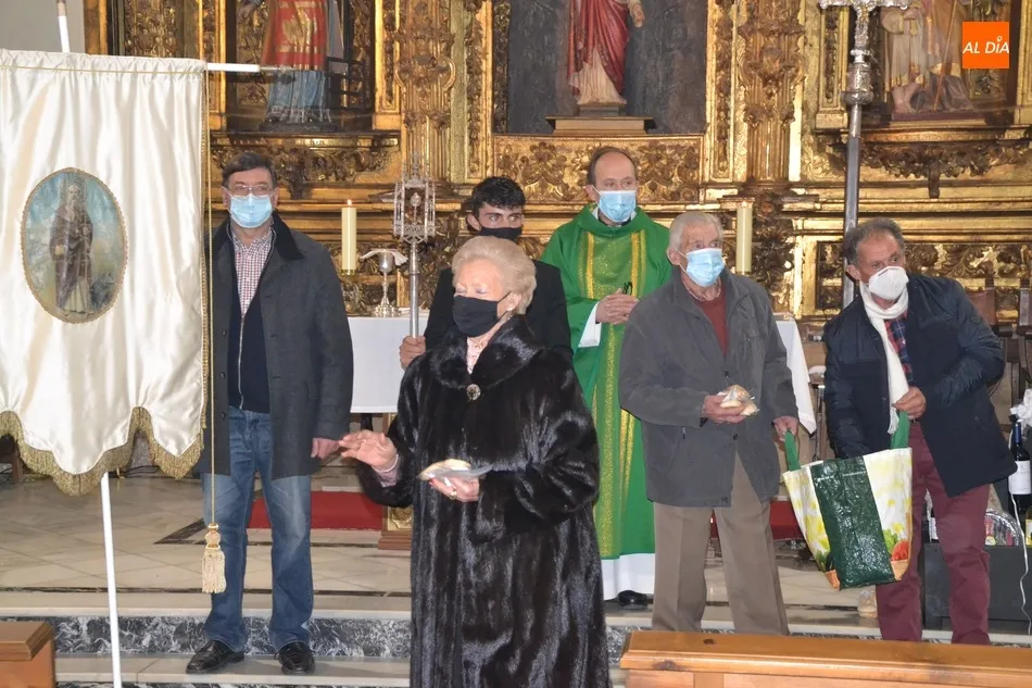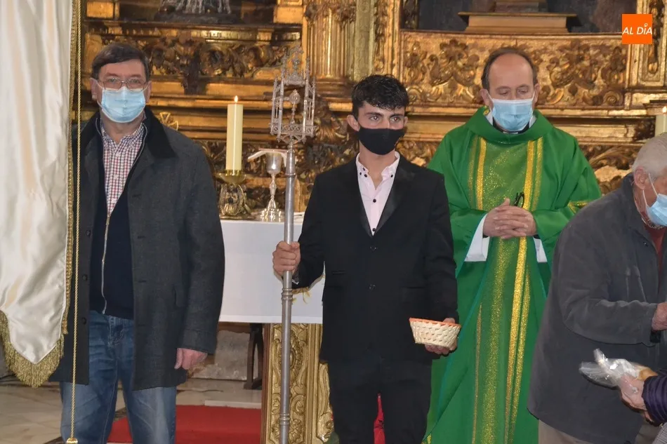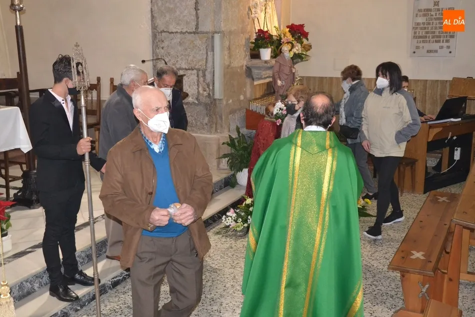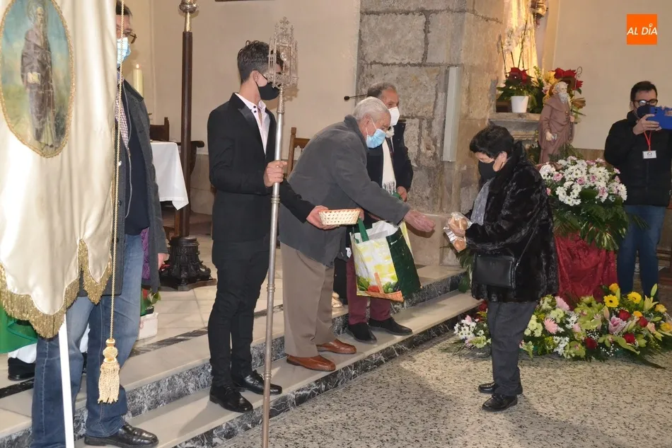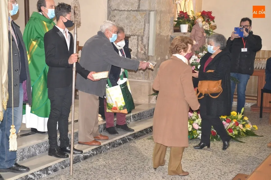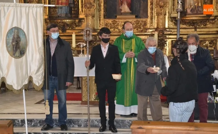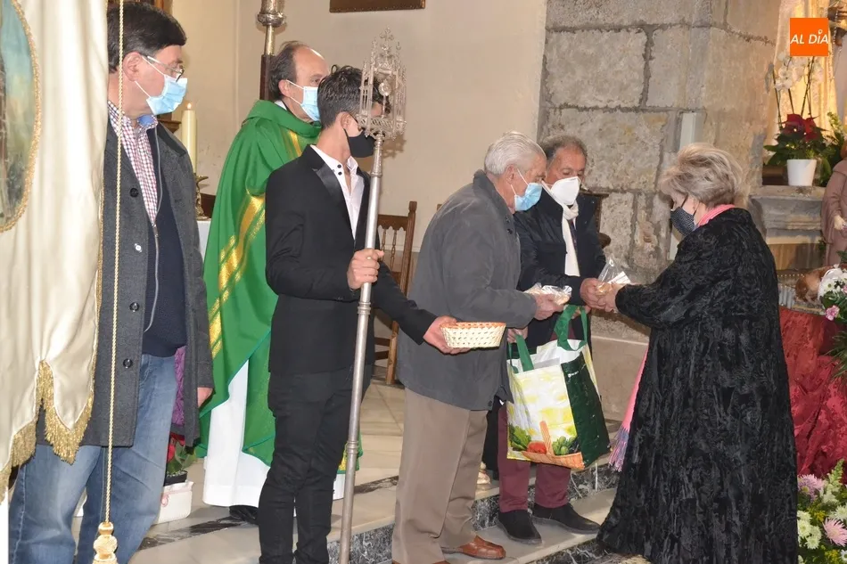 Tomás Muñoz Porras hizo ese comentario en los momentos propiamente dichos de celebración de San Antón que tuvieron lugar a la conclusión de la misa y que consistieron, por un lado, en un sencillo ofertorio, en el cual los asistentes a la misa se acercaron al altar para que les hiciesen entrega de una bolsita con un par de panecitos de San Antón los responsables de la Cofradía y el joven mayordomo, Sergio Muñoz.