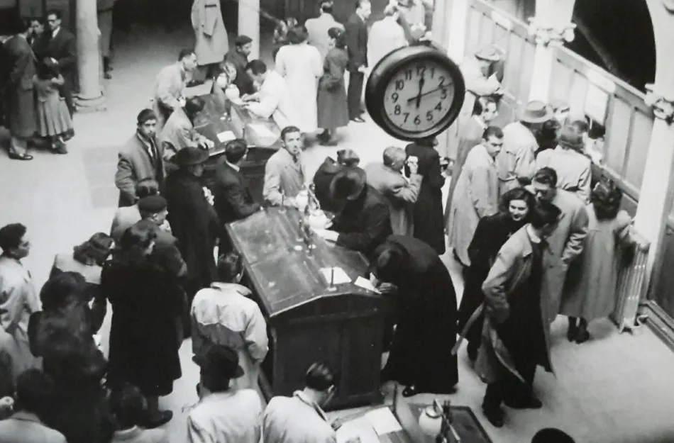 • Clientes en el interior de la oficina de Correos. Año 1950