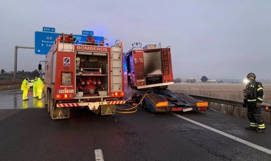 Fuentes de los Bomberos de la Diputación de Valladolid han explicado que el fuego se inició en la góndola de un tráiler que transportaba un camión de bomberos de Melilla y que circulaba por la A-6 dirección La Coruña, por lo que paró en el arcén.