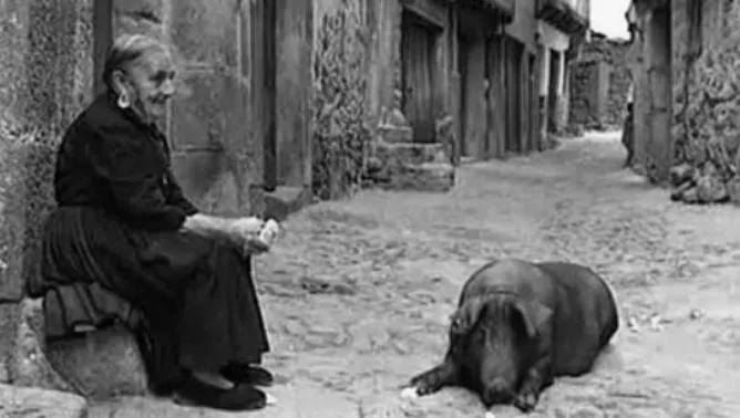 ? El Marrano de San Antón en la plaza del Barrio Nuevo de La Alberca. Fotografía: Ruth M. Anderson. (Hispanic Society of America).