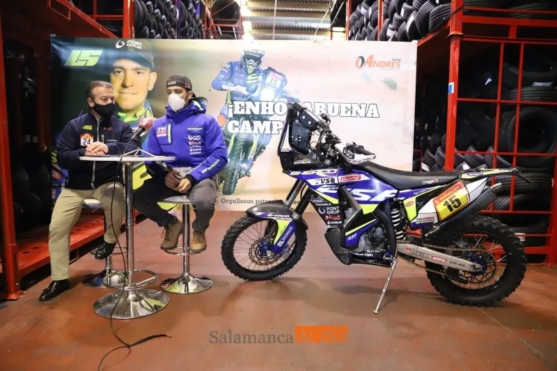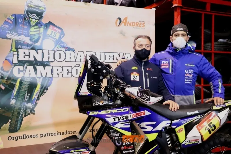 Lorenzo Santolino (Sherco) ofreció una rueda de prensa -en Neumáticos Andrés- tras quedar sexto en el Dakar 2021 y cuajar una asombrosa actuación en medio del desierto.