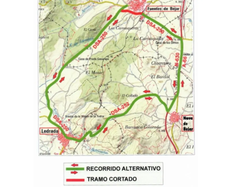 Con motivo de la ejecución de los trabajos de conservación de la carretera DSA-250, en el tramo Variante de Fuentes de Béjar (intersección con la carretera DSA-244 por la calle La Constitución, hasta la intersección con la calle Ferrocarril), promovidas por la Diputación de Salamanca dentro de los planes de inversión de carreteras, dicho tramo de carretera permanecerá cerrado al tráfico de vehículos del 25 de enero al 25 de marzo de 2021.