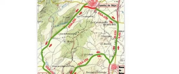 Para los desplazamientos entre ambos puntos se recomienda el itinerario alternativo a través de los municipios de Nava de Béjar y Fuentes de Béjar
