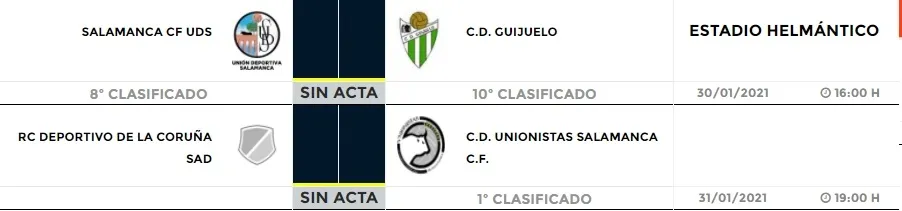 Sorpresón para el derbi: el Salamanca UDS adelantó al sábado el partido con el Guijuelo, ya que se jugará el 30 de enero a las 16:00 horas y no el domingo, que es lo habitual en los partidos en casa de los blanquinegros. Así, los del Helmántico decidieron modificar la fecha y aprovechar que los chacineros cuenten con menos días para entrenar tras estar en confinamiento domiciliario por los positivos. De hecho, el horario ya figura en la FCYLF.