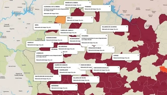 Como sucede en todas las zonas de salud, es probable que en algunos de los municipios a los que la Junta atribuye casos positivos de coronavirus, en realidad las personas afectadas se encuentran fuera de ellos, lo que resulta difícil de comprobar. Además, sobre la valoración del índice de riesgo en municipios de menos de 1.000 habitantes, cabe precisar que con un solo positivo el resultado siempre es de Muy alto. Esto es debido a que en la fórmula para la obtención de estos valores se aplica sobre una población de 100.000 habitantes.