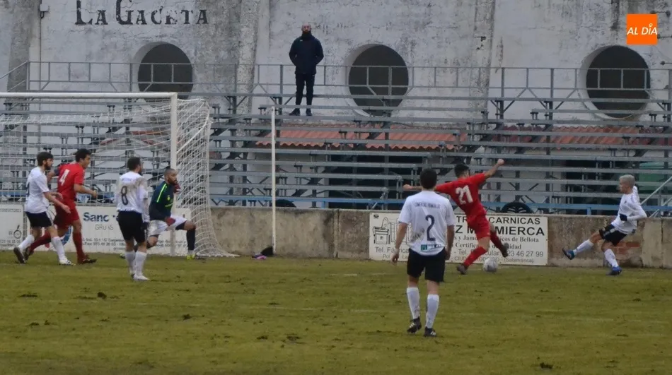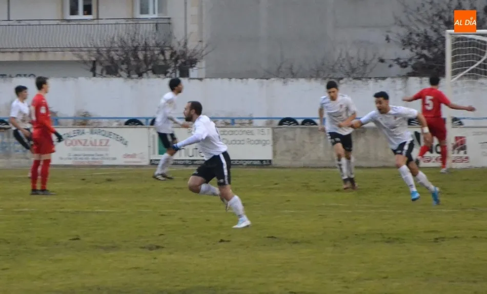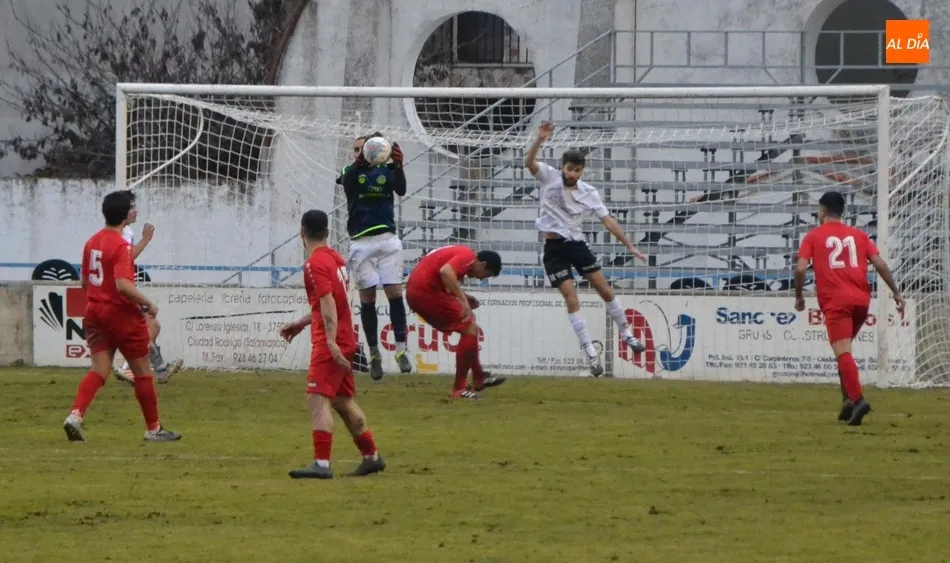 Para empatar, en el 58?, el Ciudad Rodrigo recurrió al ?formato habitual? para estrenar su casillero: Maza a balón parado, en este caso no de penalty como en los tres encuentros anteriores, sino con una falta muy cerca del borde del área lanzada magistralmente en la cual el balón esquivó por la derecha a la barrera y entró ajustadísima a la cepa del palo derecho, haciendo inútil la estirada del portero. El gol sentó muy bien al Ciudad Rodrigo, que se quitó un peso de encima, y continuó mandando con más fluidez.