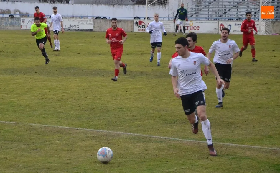 A partir del 30?, el Ciudad Rodrigo entró en una nueva fase de dominio, intentando mostrar más voracidad ofensiva, generando tres ocasiones ciertamente claras: una acción en la que el portero se anticipó a un pase raso de Pablo López; y dos jugadas bastante largas, con muchas combinaciones, que culminaron con sendos despejes del balón por parte de la defensa cuando estaban cerca de la portería.