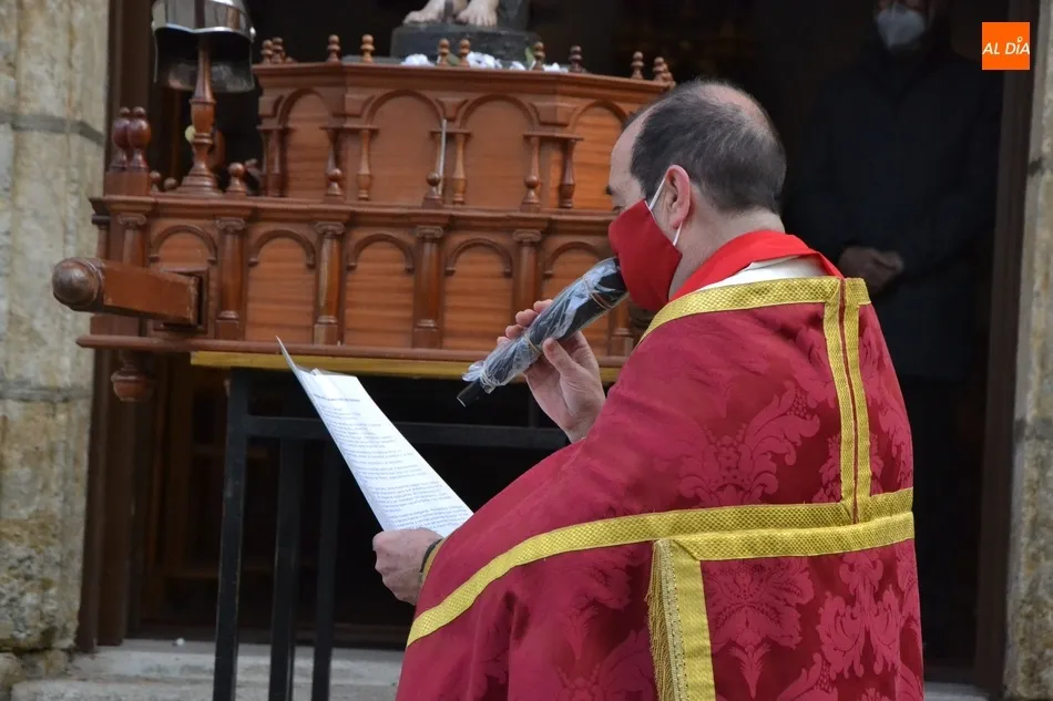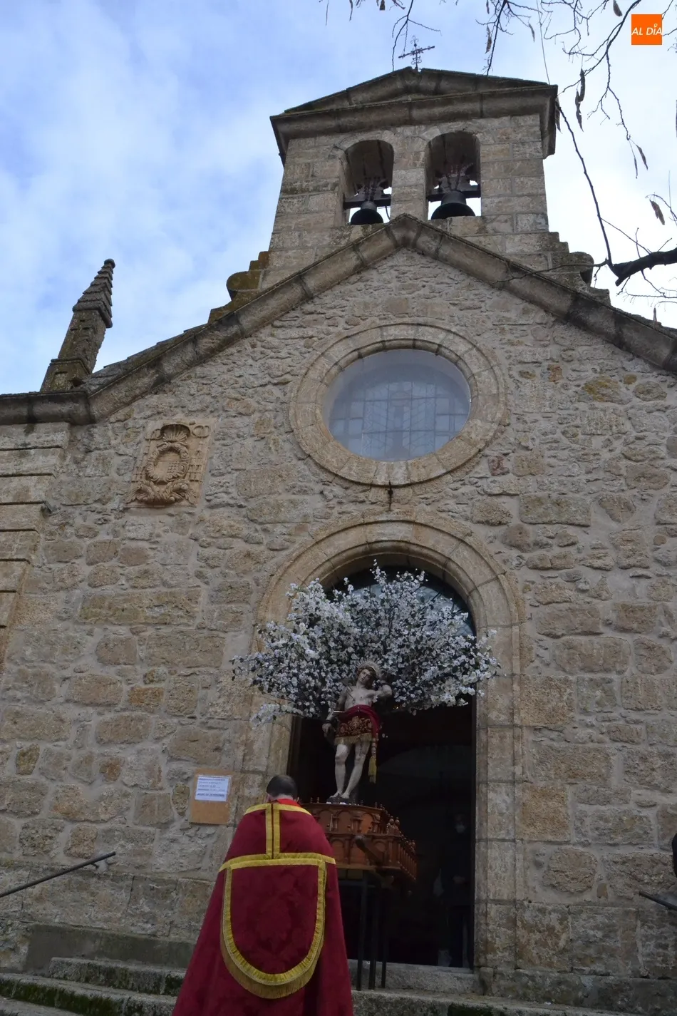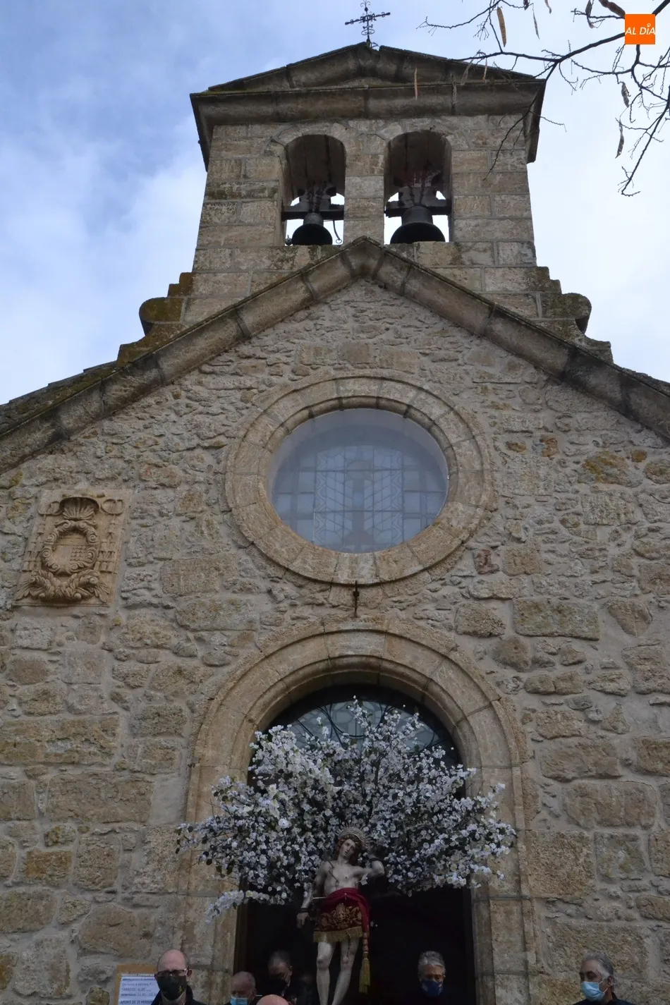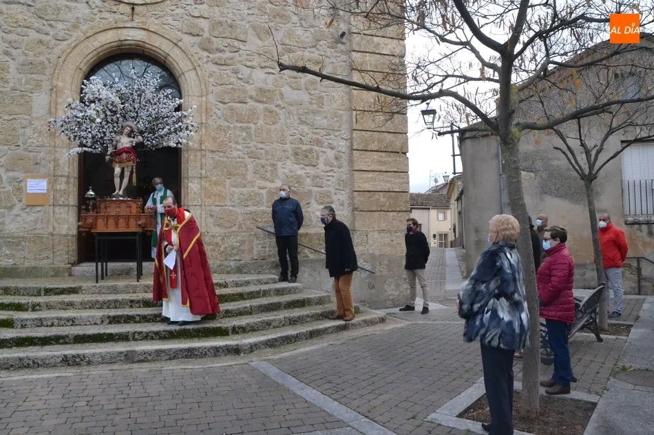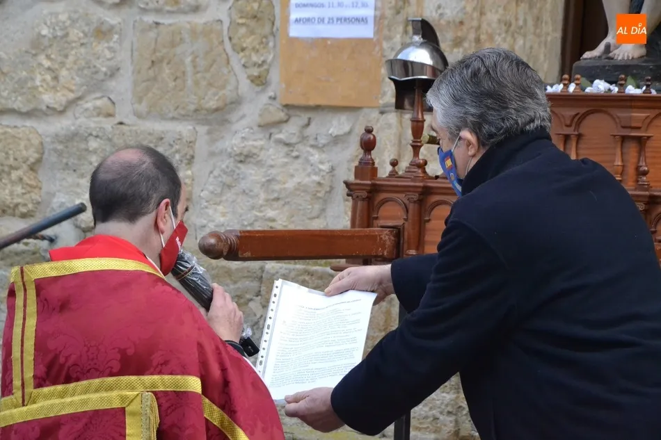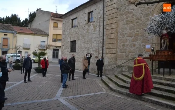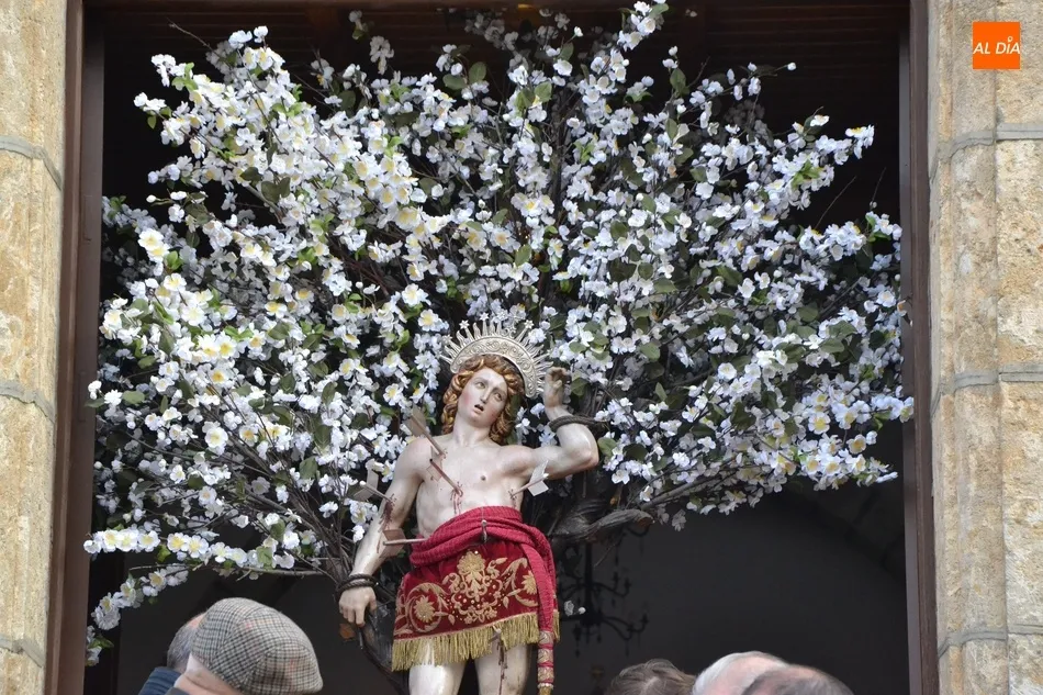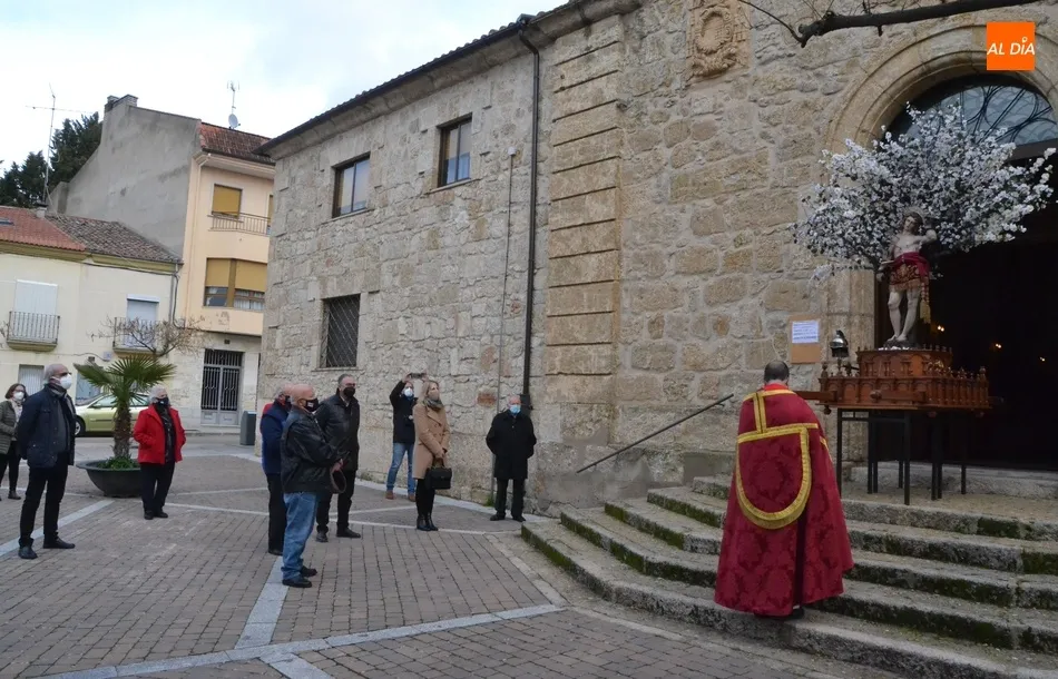 Ese acto a las puertas consistió en la lectura de una oración de súplica a San Sebastián por parte del párroco de San Cristóbal, Rafael Caño, quién expresamente mencionó que ?suplicamos ser fortalecidos en este tiempo de pandemia y ser liberados del coronavirus; que los enfermos y sus familiares sean reconfortados y los difuntos acogidos en la casa celestial?. Tras ello hubo una ronda de aplausos y una serie de vivas, a San Sebastián, San Cristóbal, Ciudad Rodrigo y España por parte de Joaquín Sánchez ?Tato Galerías?, antes de introducir de nuevo en el templo la imagen, con algo de dificultad (hubo que bajarla casi a ras de suelo), ya que este año el ramo que se le ha colocado a modo de ?ramas? ha sido bastante generoso.