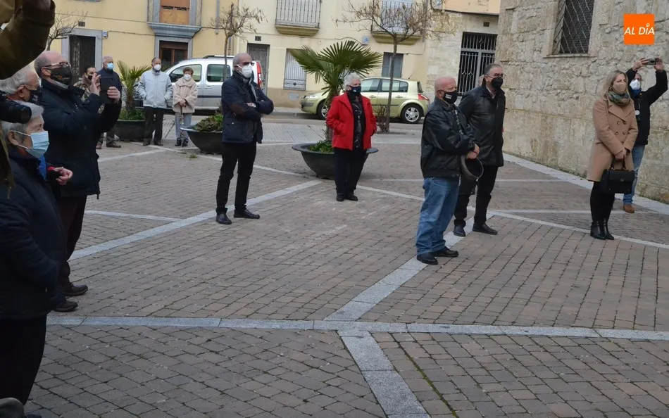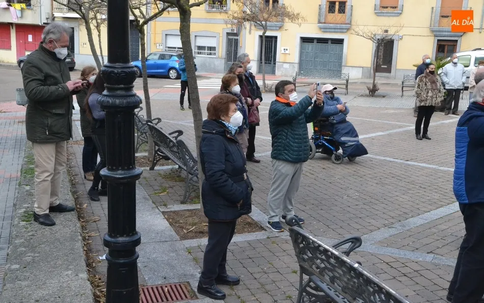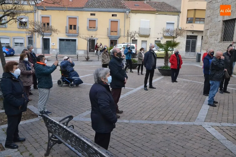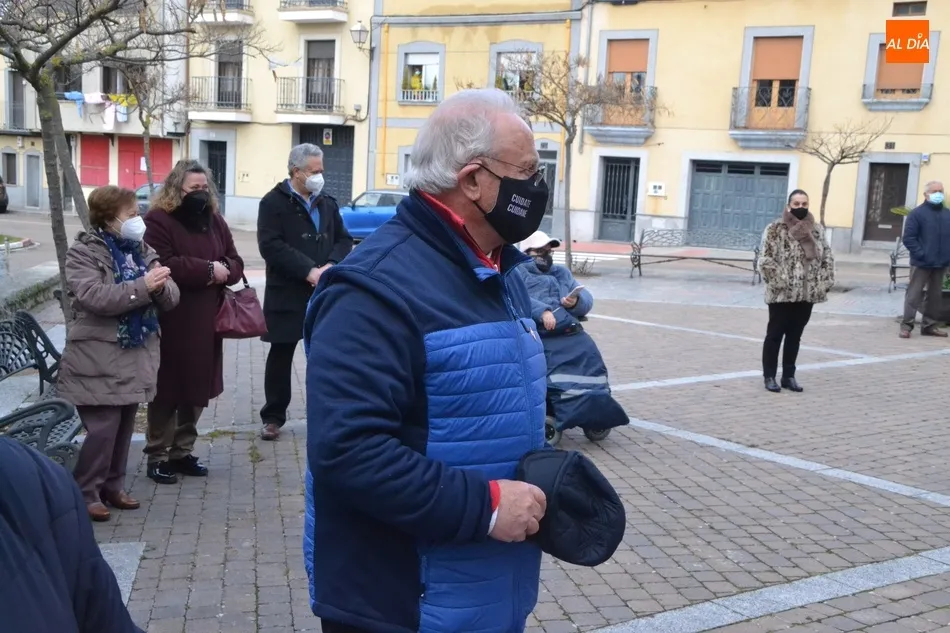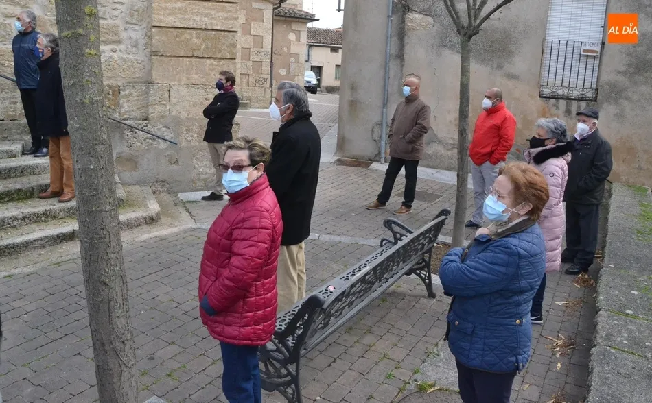 De este modo, concluida la misa dominical de 12.30 horas en la Iglesia de San Cristóbal (que tuvo el aforo completo), varios miembros de la Cofradía sacaron la imagen del Santo a las puertas del templo (fue colocada sobre un par de mesas), donde apenas se congregaron las personas que habían asistido a la eucaristía (entre ellos la teniente de alcalde del Ayuntamiento, Beatriz Jorge Carpio) y algún vecino de la zona, ya que el acto no se había anunciado previamente de forma pública para evitar precisamente que se juntasen demasiadas personas.