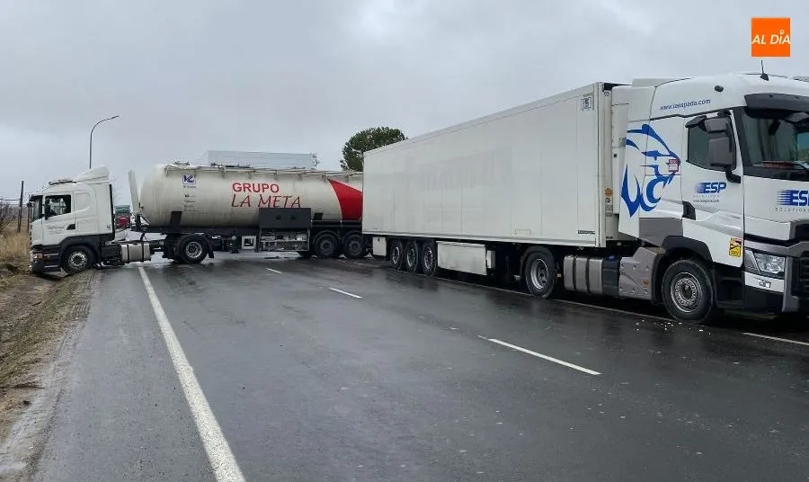 Alrededor de las 12.30 horas de este lunes se registraba este siniestro en la Nacional-501, a la entrada de Peñaranda de Bracamonte, junto al acceso a las instalaciones de una importante empresa de la localidad.