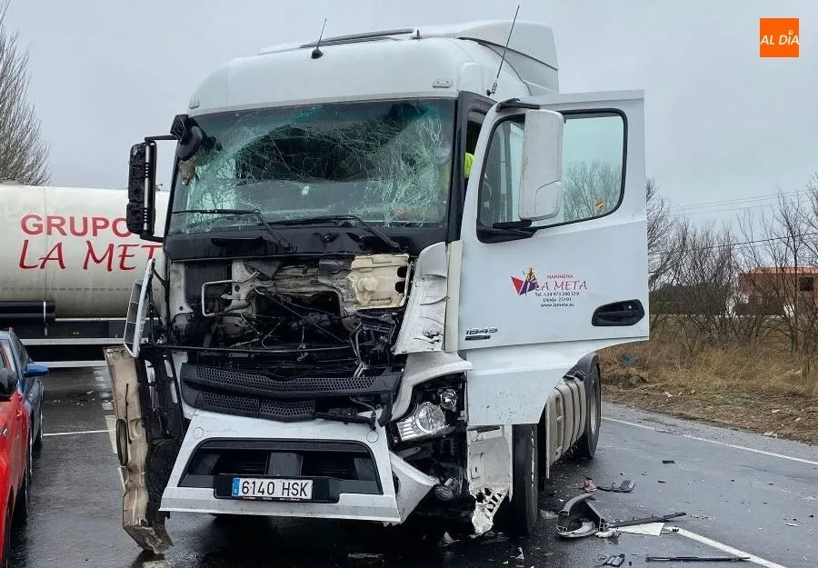 Como consecuencia de la avería de un camión, al lugar había acudido una cabeza tractora para remolcarlo pero, por causas que se están investigando, en mitad de esas maniobras se estrellaba con otro vehículo pesado que circulaba por la misma vía. En concreto, una cisterna de harina que fue el centro del impacto, que provocó numerosos daños materiales.