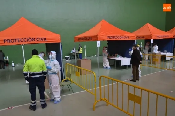 La primera jornada de cribado masivo en busca de casos de coronavirus, mediante pruebas de infección activa (tests de antígenos de segunda generación), en el frontón del Pabellón Eladio Jiménez de Ciudad Rodrigo ha arrojado un total de 13 positivos entre las 1.493 personas (es decir, un 0,87%) que se acercaron a lo largo del día hasta allí, en horario de mañana y tarde (8 se detectaron por la mañana, en unos 600 tests, y 5 por la tarde, en los restantes).