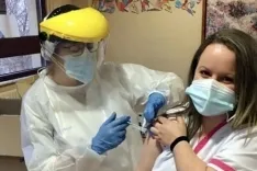 Trabajadores y residentes han recibido la segunda parte del tratamiento de manos de un equipo medico covid destinado a la gran campaña de vacunación