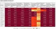 Por debajo de la media se encuentra Zamora, con 628 casos por 100.000, misma cifra que en la jornada precedente; Soria, que crece hasta los 614 casos; Ávila, que desciende hasta los 598 casos y Burgos con la tasa más baja, pese a un ligero incremento hasta los 351 casos.