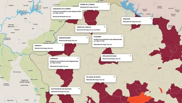 En todas las zonas de salud sucede que en algunos de los municipios a los que la Junta atribuye casos positivos de coronavirus, en realidad las personas afectadas se encuentren fuera de ellos, lo que resulta difícil de comprobar. Además, sobre la valoración del índice de riesgo en municipios de menos de 1.000 habitantes, cabe precisar que con un solo positivo el resultado siempre es de Muy alto. Esto es debido a que en la fórmula para la obtención de estos valores se aplica sobre una población de 100.000 habitantes.