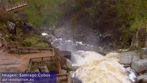 Bonitas imágenes del Pozo de los Humos las que este sábado emitía Telecinco en su telediario del mediodía, vídeo que ha sido realizado por la empresa salmantina Air-Evolution mediante el empleo de un dron.