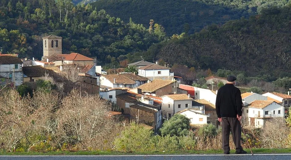 ?Hay una misteriosa simbiosis aquí. El anciano contempla el lugar de su origen. De espaldas a nosotros, no vemos su mirada, el amor que haya en ella hacia su caserío, tampoco la memoria de todo lo vivido...? (José Luis Puerto) / Foto de Carlos Santiago