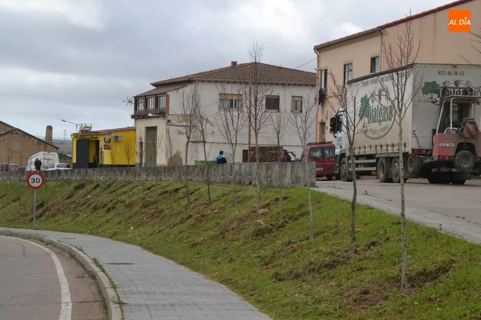 En torno al lugar donde se han plantado, Marcos Iglesias indicó que ?el talud estaba muy pobre?, por lo que han decidido rehacerlo con árboles (?ahora parecen poca cosa, pero cuando empiecen a florecer...?), ?para que se vea un entorno más urbano y moderno?. José Manuel Jerez explicó que se va a resembrar de hierba natural y se le va a meter riesgo por aspersión, siendo el objetivo que quede como el talud del parking de autocaravanas, porque ?las entradas tienen que estar bien preparadas?.