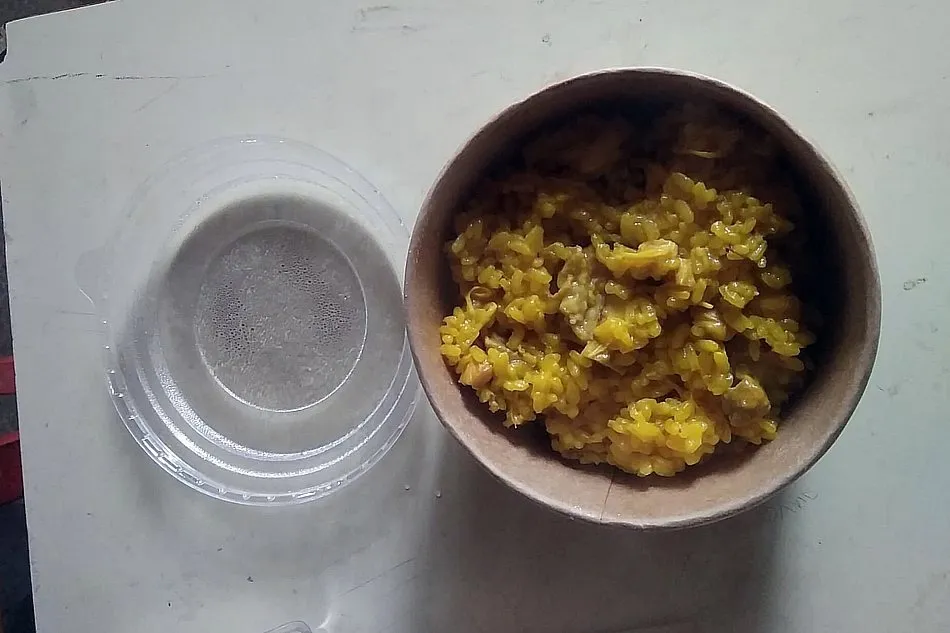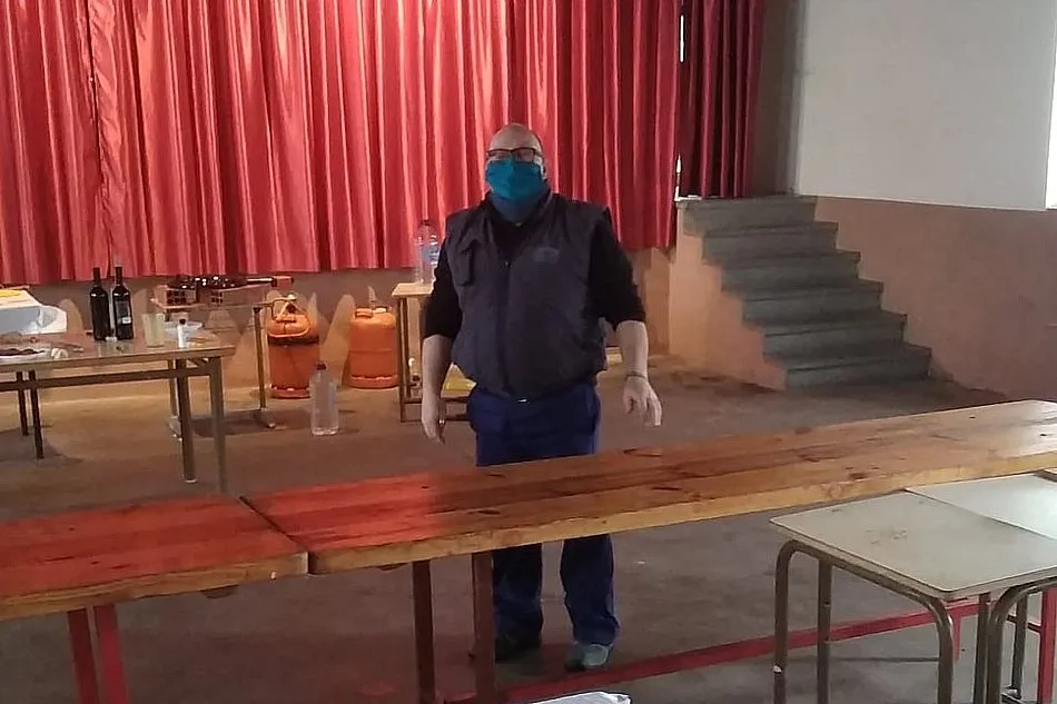 Embutidos y queso de entremeses, paella de plato fuerte y tarta san marcos de postre, acompañada de una botella de licor, fueron los ingredientes del menú repartido puerta por puerta y en recipientes independientes, cumpliendo así todas las medidas sanitarias y de higiene alimentaria.