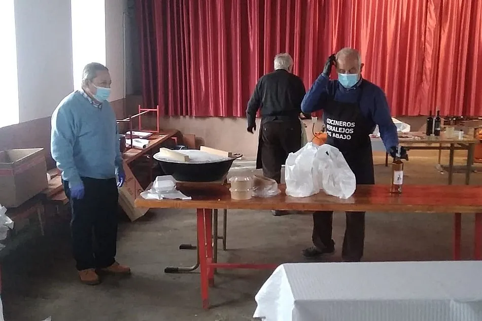 El Ayuntamiento repartió casa por casa un menú formado por embutidos de entremeses, paella, tarta y licor, todo en recipientes independientes