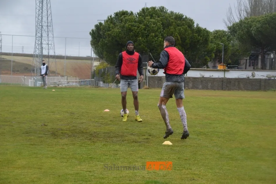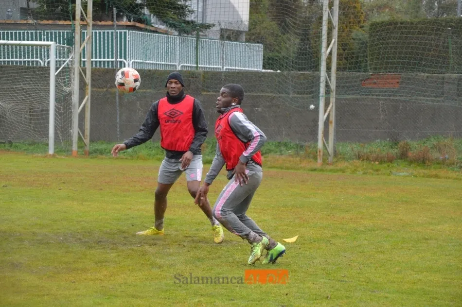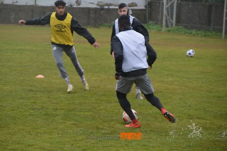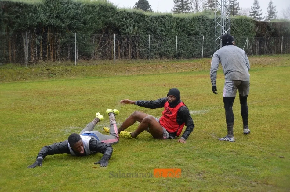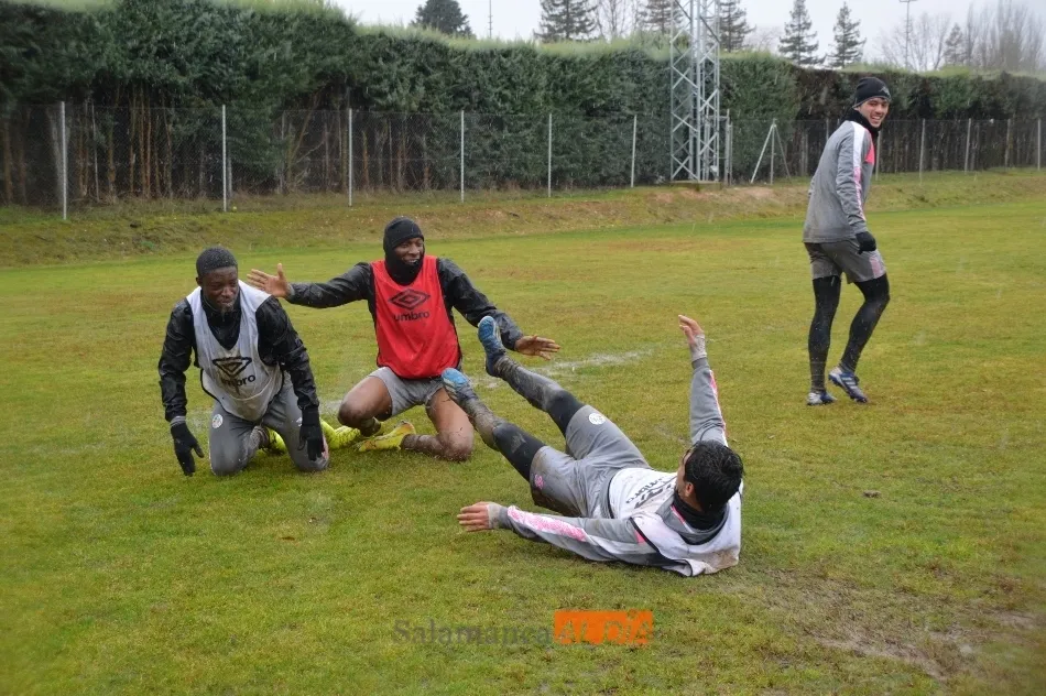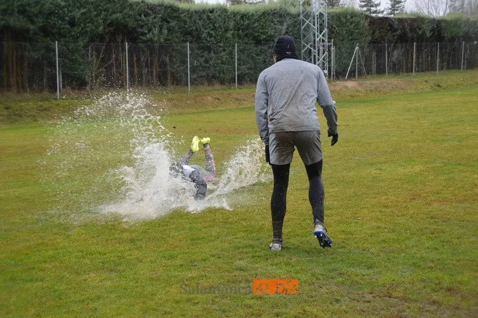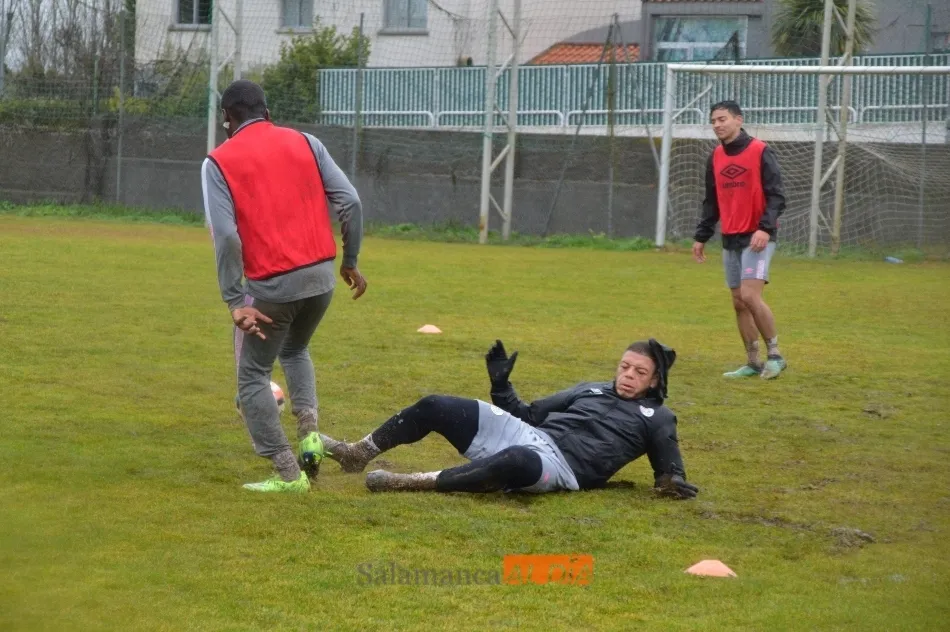El Salamanca UDS y su filial entrenaron pegados bajo la lluvia y Juancho acudió al Helmántico para acabar de recuperarse de su lesión del quinto metatarso de uno de sus pies. El colombiano no saltó al Tori -el ?B? se ejercitó en el Anexo-, pero sí que estuvo en el vestuario con sus nuevos compañeros y en las instalaciones del club este jueves.