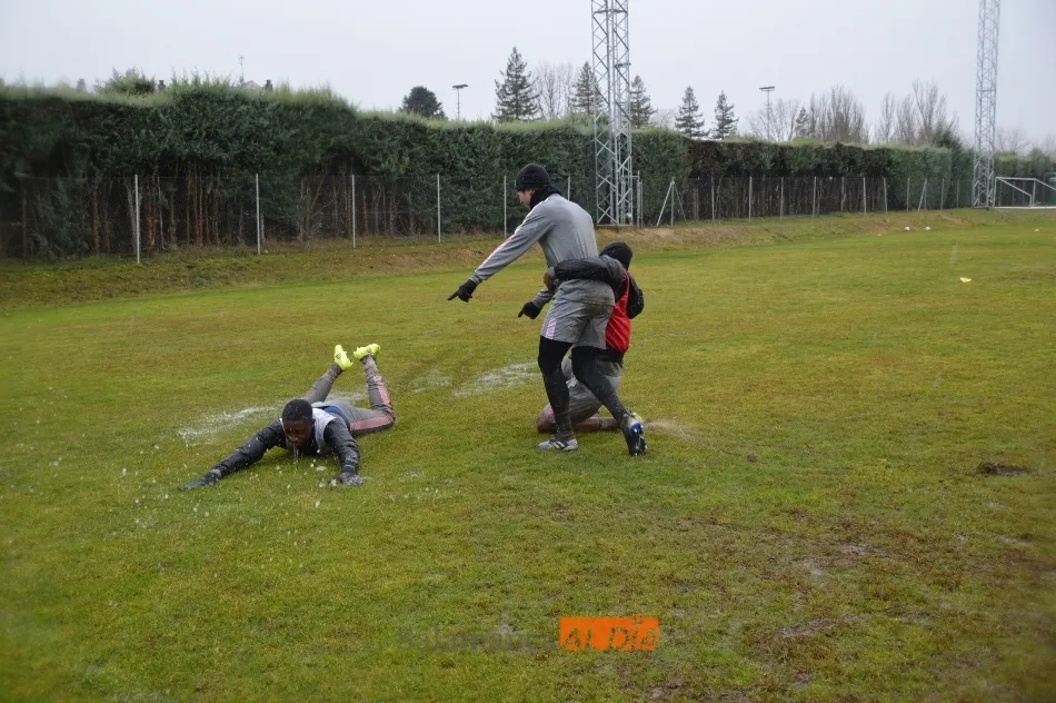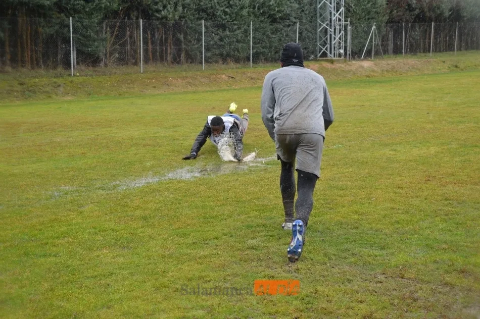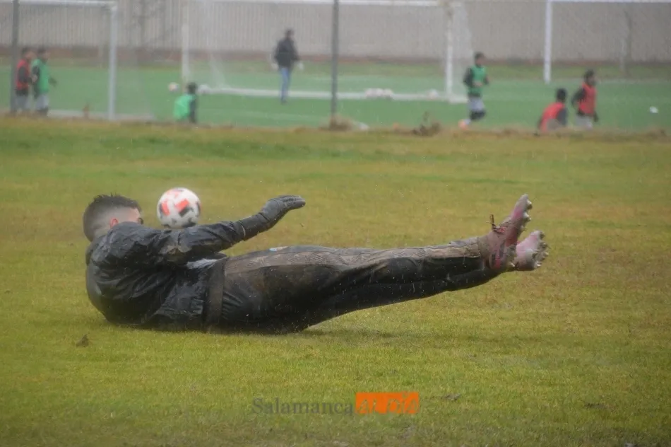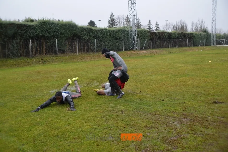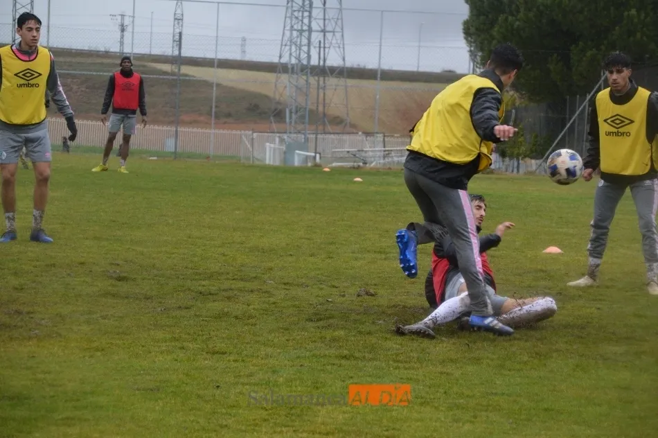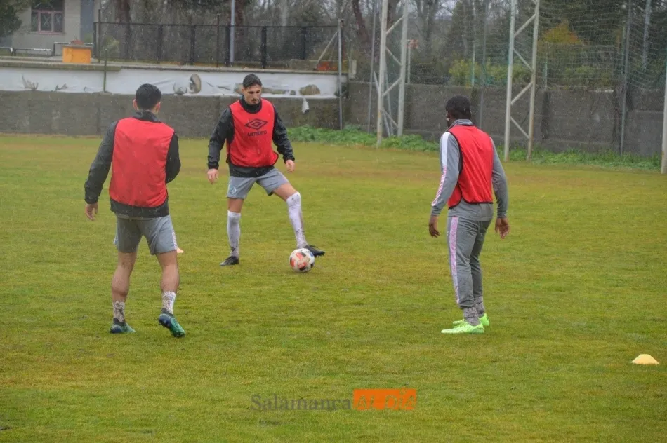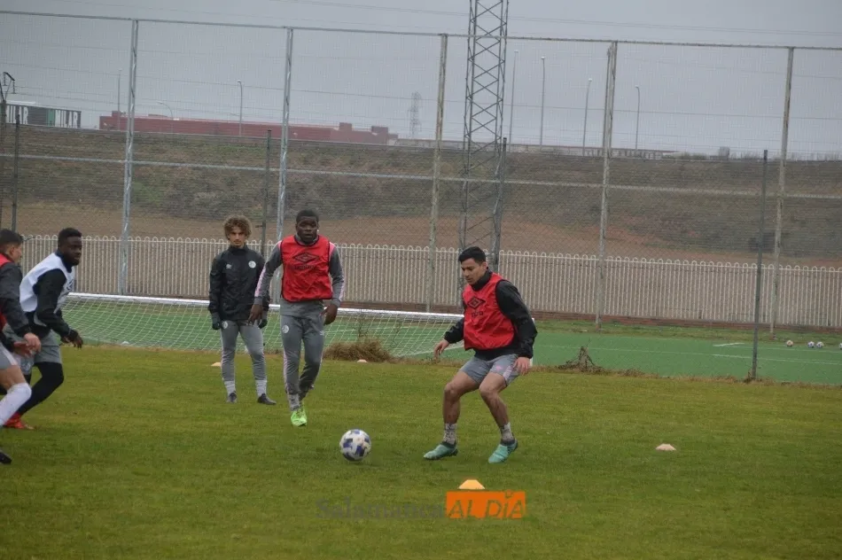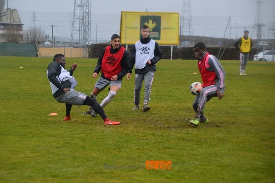 El Salamanca UDS y su filial entrenaron pegados bajo la lluvia y Juancho acudió al Helmántico para acabar de recuperarse de su lesión del quinto metatarso de uno de sus pies. El colombiano no saltó al Tori -el ?B? se ejercitó en el Anexo-, pero sí que estuvo en el vestuario con sus nuevos compañeros y en las instalaciones del club este jueves.