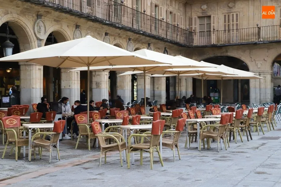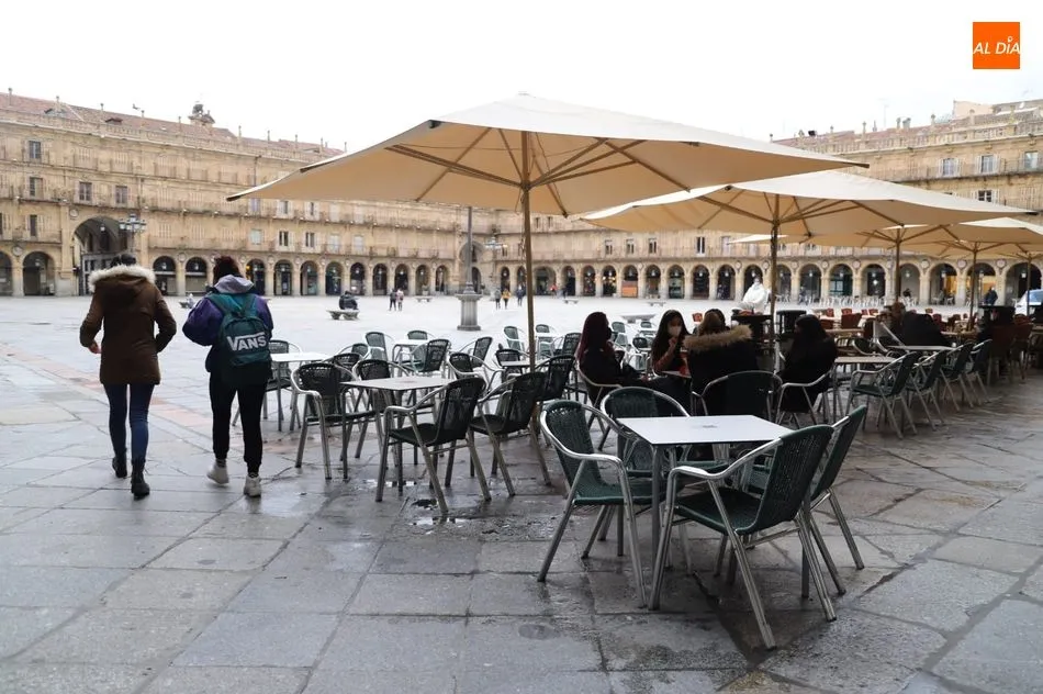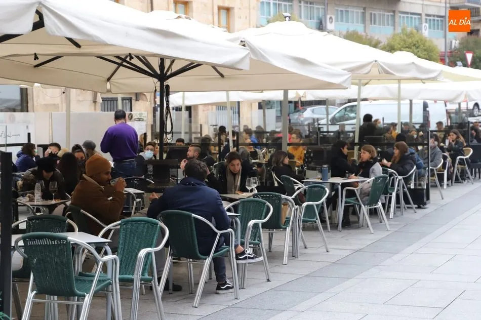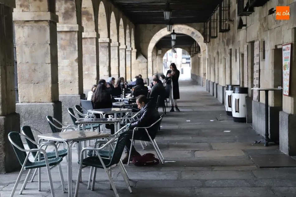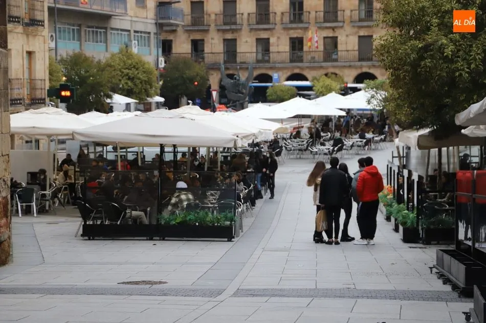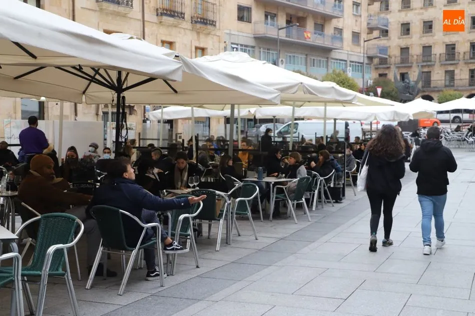 Pero en Salamanca cualquier tregua que concede la lluvia de estos días es aprovechada para disfrutar de un respiro en las terrazas, al menos eso es lo que nos hemos encontrado esta tarde de viernes. Eso sí, cuanto más resguardada del viento y de las inclemencias del tiempo (tanto por la ubicación de la calle como por la instalación de mamparas, entre otros motivos), mejor, por eso mientras en algunas la ocupación es menor, otras terrazas a primera hora de esta tarde estaban prácticamente llenas.