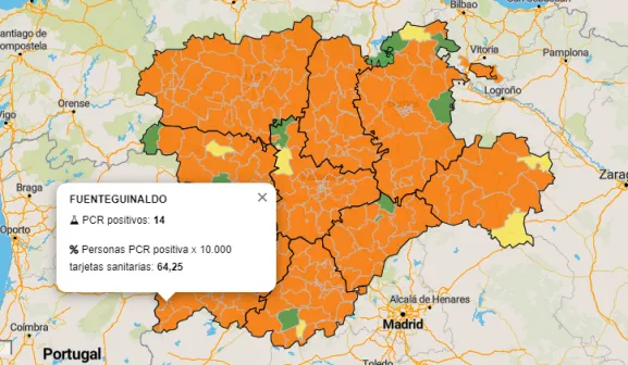 En lo que se refiere a los datos desglosados por municipios, este viernes hay malas noticias en uno de los municipios que integran esa Zona Básica de Fuenteguinaldo, Puebla de Azaba, y en Saelices el Chico (que forma parte de la Zona Básica de Ciudad Rodrigo), ya que registran al menos un positivo en las últimas horas, después de que el miércoles hubiesen cumplido la semana de antigüedad los anteriores positivos detectados en ambas localidades. Además, hay nuevos positivos en Navasfrías entre los mayores de 65 años.