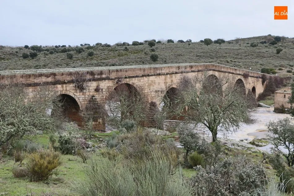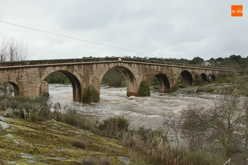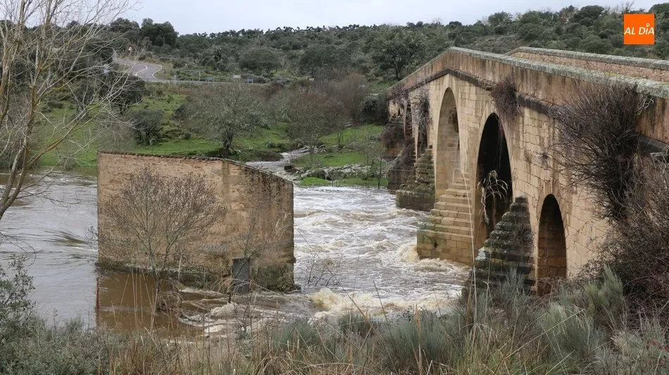 Precisamente, otro de los puntos de interés, además de la antigua fábrica de harinas en su pedanía de Gema de Yeltes, es el puente de los siete ojos, construcción que se asienta ahora sobre el curso del Huebra, solo uno pocos cientos de metros por debajo de la unión de los dos ríos y donde estos días se observa la fuerza el agua, capaz de mover a más de una docena de molinos que se ubicaban en su curso hasta su desembocadura en el Duero, entre Saucelle e Hinojosa de Duero, y de los que hoy solo quedan sus ruinas.