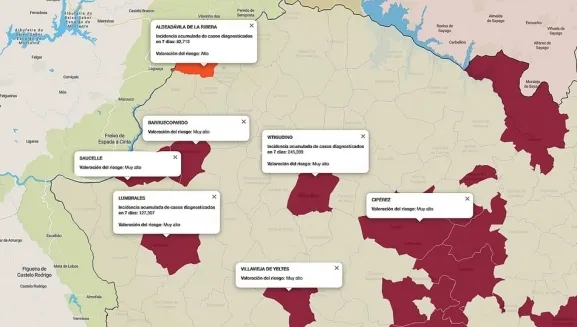 También conviene aclarar que al objeto de evitar posibles errores, la Junta de Castilla y León realiza en ocasiones segundas pruebas y puede tardar varios días en actualizar el mapa municipal de incidencia de riesgo, lo que no sucede con el conteo de casos registrados mediante PCR o pruebas de antígenos y el mapa por ZBS, que son actualizados a diario conforme se conocen los datos del día anterior. Por ello, los registros en el mapa municipal de índice de riesgo, los pueblos aparecen días después de registrase los positivos, igual que se mantienen vigentes días después de haber cumplido los siete o 14 días. Es decir, los datos del mapa de índice de riesgo por municipio no están totalmente sincronizados con los datos de pruebas por zonas de salud y sus mapas.