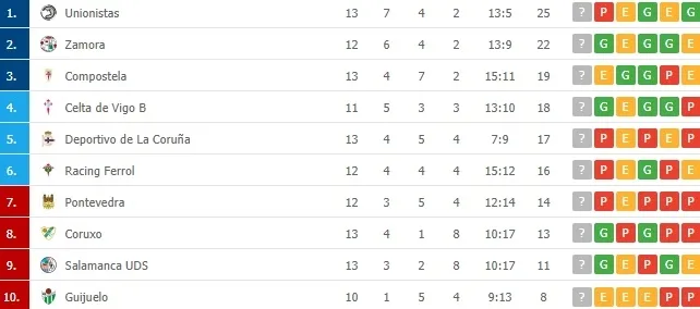 Mientras, Unionistas mantuvo el liderato, a pesar de caer por 1-2 en el Reina Sofía ante un buen filital del Celta de Vigo. Por su parte, el Guijuelo se quedó colista al empatar (1-1) con el Compostela en casa.