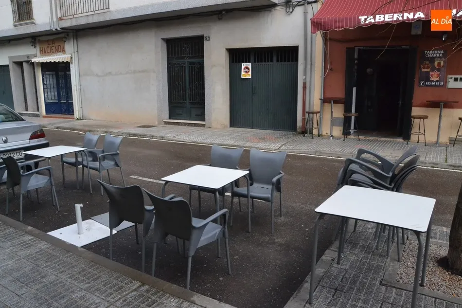 Obviamente, en la tarde del domingo no se llegó a desplegar ya ninguna terraza porque hubieran tenido que cerrar apenas dos horas después, a las 20.00 horas (ya que sigue vigente el inicio del toque de queda a esa hora), y además la tarde estaba bastante desapacible en Ciudad Rodrigo.