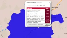 Por último, en lo que respecta al municipio de Ciudad Rodrigo, se cumple la tónica general, bajando bastante la incidencia quincenal, que pasa de 2.373 a 2.120 casos por cada 100.000 habitantes; y muy poco la semanal, que pasa de 440 a 424 casos por cada 100.000 habitantes. En números absolutos, equivalen a 52 positivos en los últimos 7 días y 260 en los últimos 14 días.