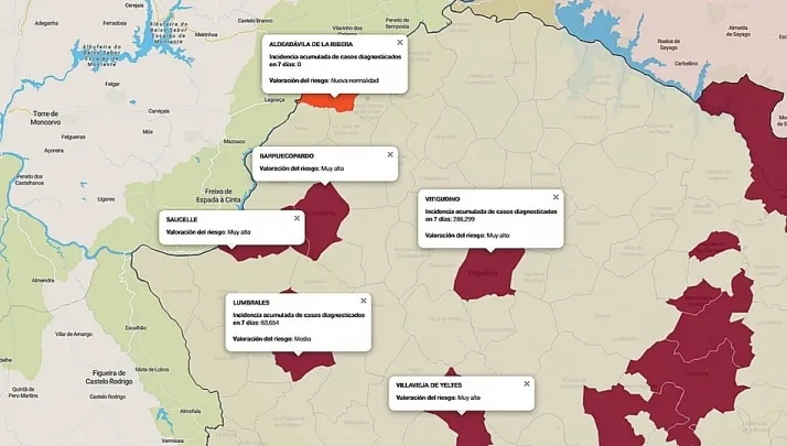 Como viene advirtiendo LAS ARRIBES AL DÍA, sucede en ocasiones que en algunos de los municipios a los que la Junta atribuye casos positivos de coronavirus, en realidad las personas afectadas se encuentren en ese momento fuera de ellos, lo que resulta difícil de comprobar, aunque la informatización de los datos hace que el positivo se atribuya al municipio que figura en la cartilla sanitaria no al que se encuentra y en el que le ha sido detectado el virus.