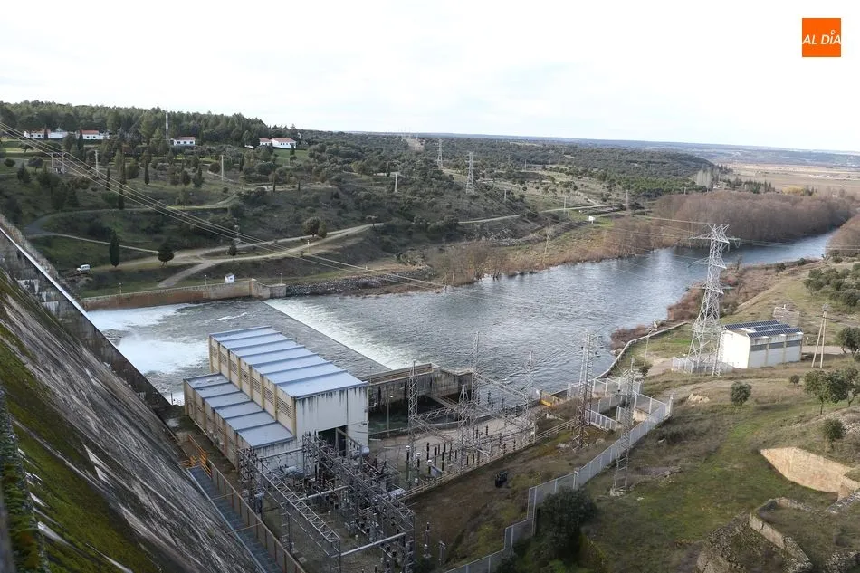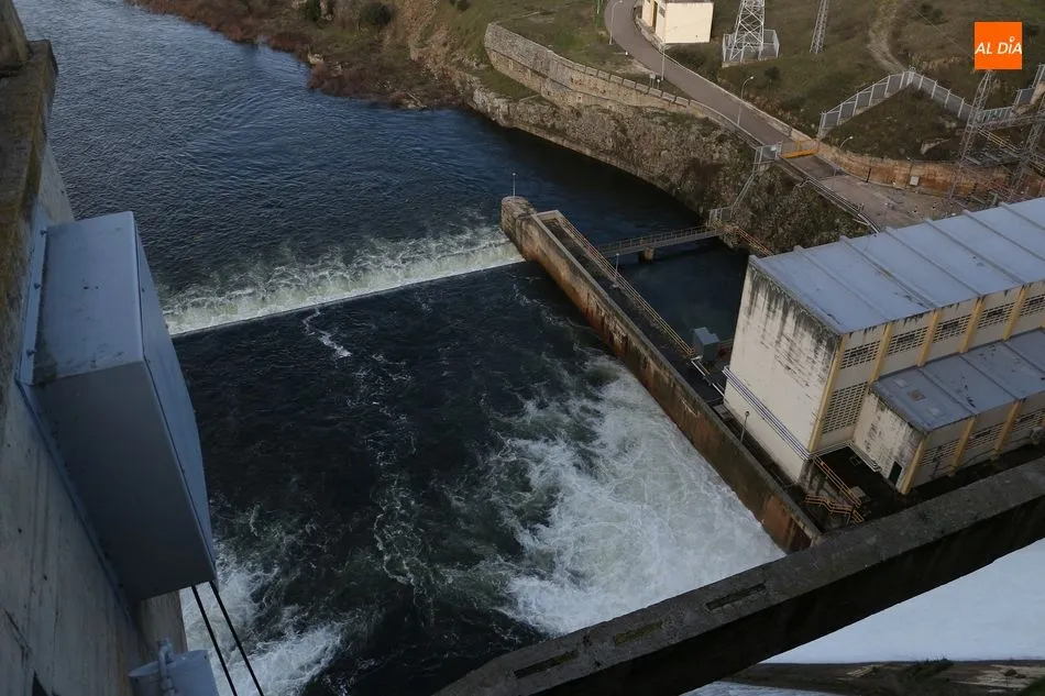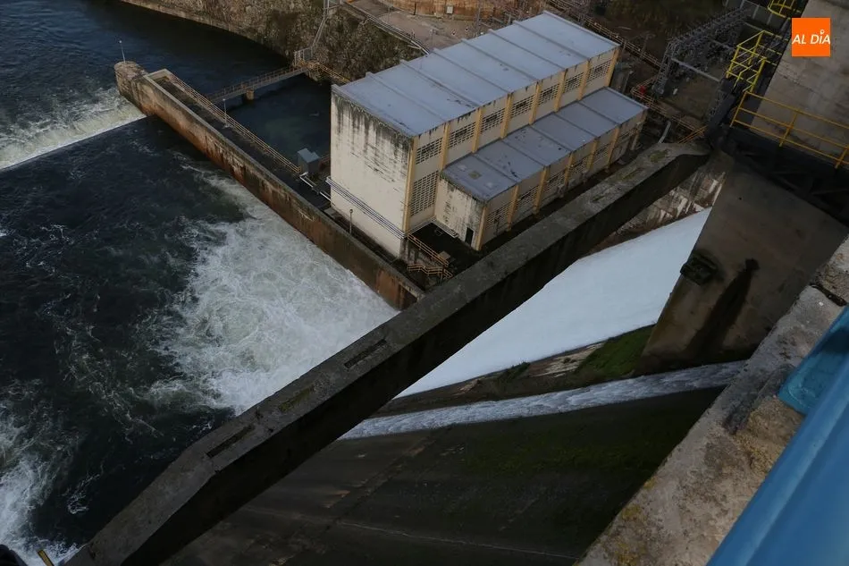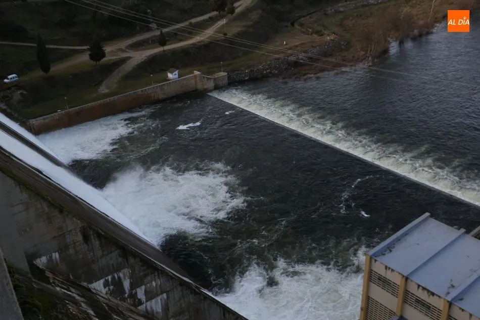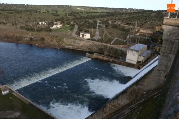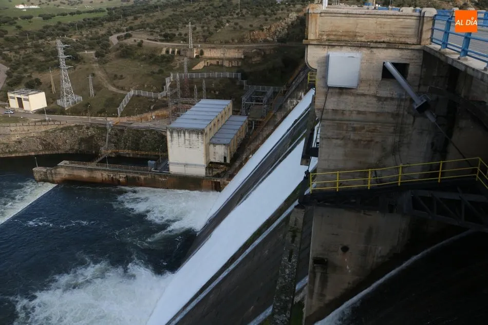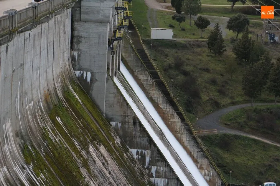 Las compuertas de la presa están abiertas para aliviar el nivel, muy superior al de la media anual