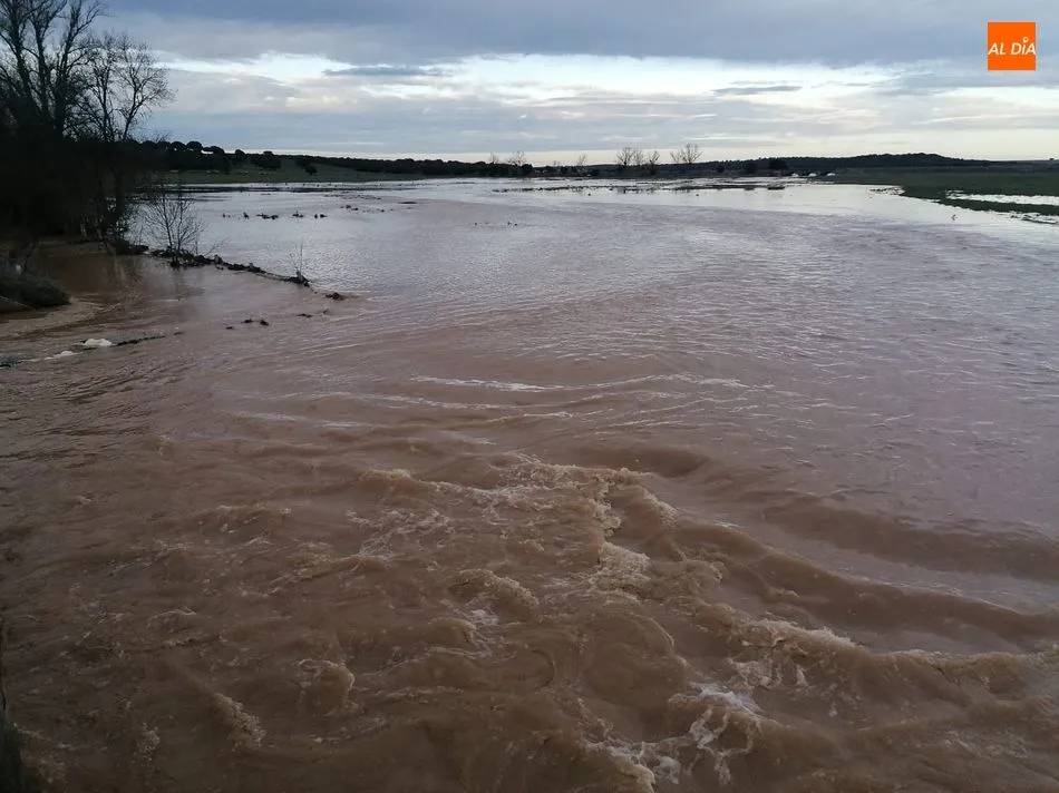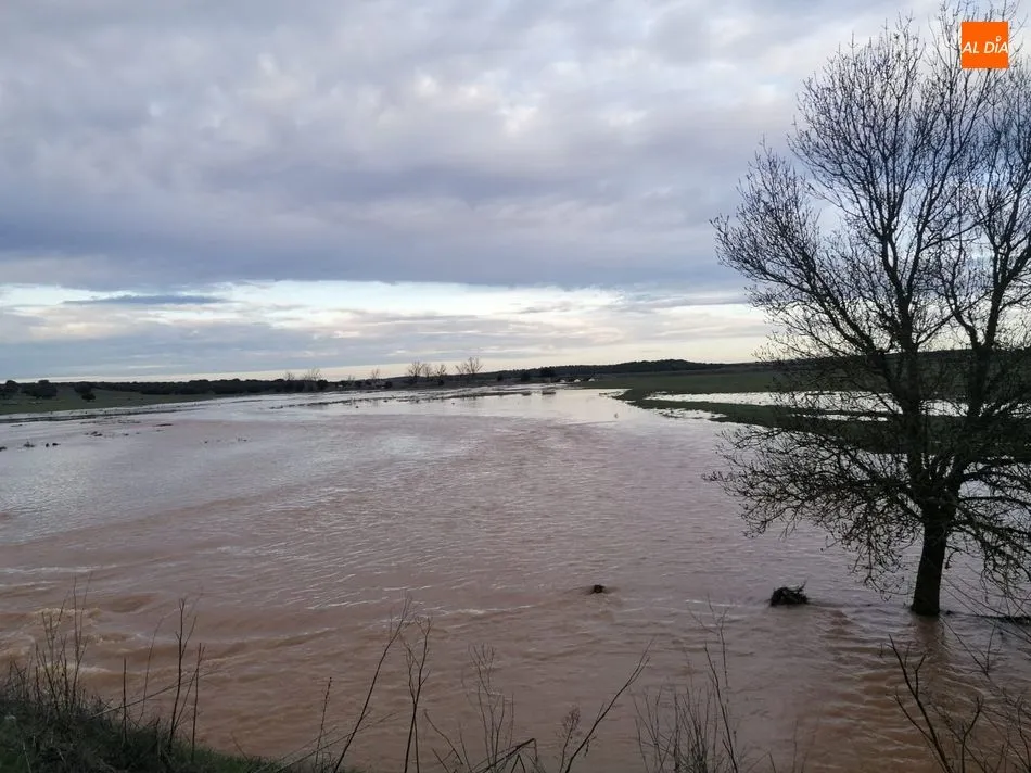 Las incesantes lluvias de los últimos días han desbordado regatos y riberas, al mismo tiempo que han aumentado notablemente el caudal de los ríos. Riberas como la de Cañedo que, en su recorrido, han ido anegando los campos de numerosos puntos de la provincia, como puede verse en las imágenes tomadas este miércoles. La cantidad de agua que baja ha sorprendido a los que esta jornada circulaban por la carretera N-630, especialmente a la altura del término municipal de Topas.