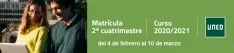 La Universidad Nacional de Educación a Distancia (UNED) ha abierto el plazo de matrícula del segundo cuatrimestre del presente curso académico 2020/2021, para todos aquellos que quieran matricularse de asignaturas del 2º cuatrimestre de los estudios de Grado, Microgrado y la mayoría de los Máster Oficiales. En concreto, está opción, abierta hasta el 10 de marzo, está pensada para estudiantes no matriculados anteriormente y para aquellos que quieran ampliar asignaturas (no están permitidas matrículas en asignaturas anuales ni para prácticas curriculares).